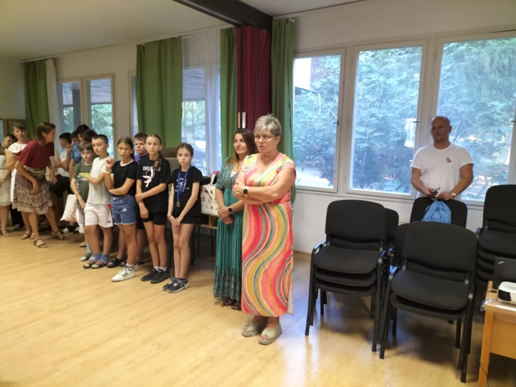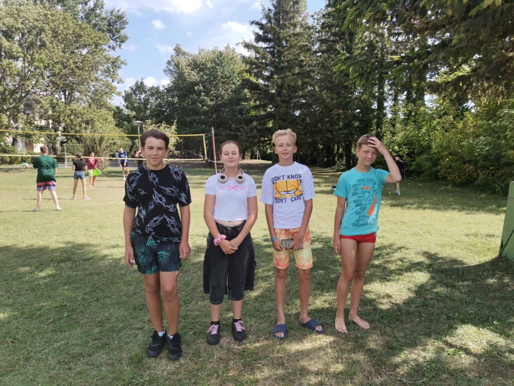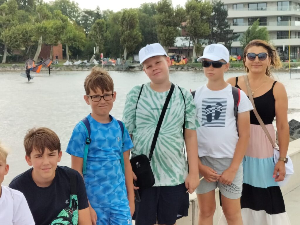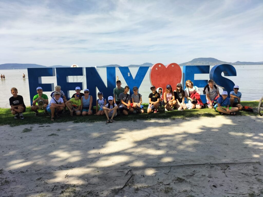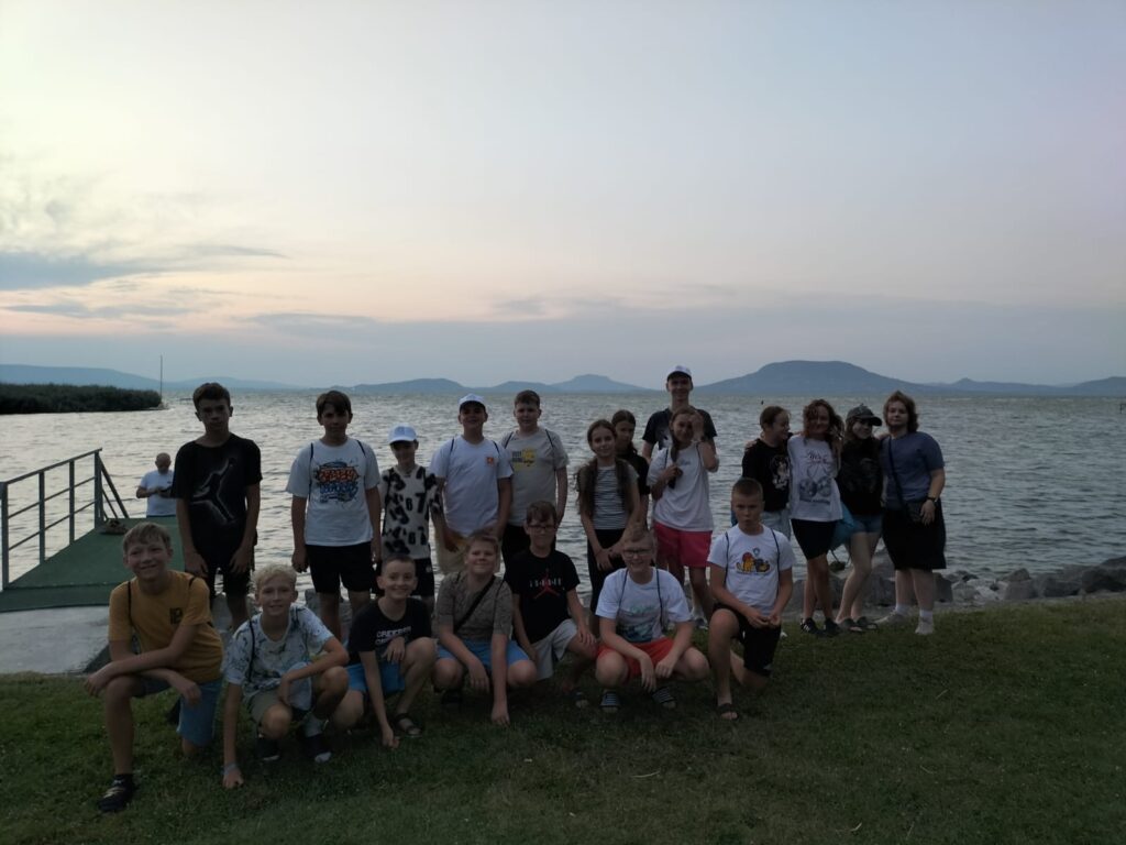 W dniach 16- 23 sierpnia grupa uczniów z naszej szkoły udała się na wakacyjny wypoczynek do zaprzyjaźnionego miasta węgierskiego Balatonfenyves. Nasi uczniowie mieli możliwość spędzenia czasu nad pięknym jeziorem Balaton. Czas nad Balatonem był bardzo wypełniony. Poznaliśmy miasteczko z jego licznymi atrakcjami m.in. klub jachtowy, liczne plaże, tutejszą szkołę czy dom kultury. Mieliśmy możliwość przejazdu kolejką wąskotorową podczas którego mogliśmy podziwiać faunę i florę Balatonu. Byliśmy również nad pięknym jeziorem termalnym, w którym woda ma 42 stopnie. W czasie naszego pobytu nad Balatonem zawiązaliśmy liczne przyjaźnie z uczniami Siedmiogrodu. Wspólnie spędzaliśmy czas przy ognisku, śpiewaliśmy węgierskie i polskie piosenki. Wspólnie uczestniczyliśmy w grze terenowej, graliśmy w piłkę nożną oraz siatkową. Dzięki bardzo słonecznej pogodzie mogliśmy codziennie zażywać kąpieli w jeziorze, pływać na rowerach wodnych oraz zjeżdżać z pięknej zjeżdżalni. W czasie pobytu nie zabrakło również zajęć plastycznych podczas, których uczniowie malowali krajobraz nad Balatonem. Czas nad Balatonem minął bardzo szybko. Wypoczęci , zadowoleni, opaleni wróciliśmy do domu.