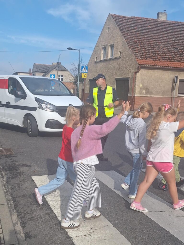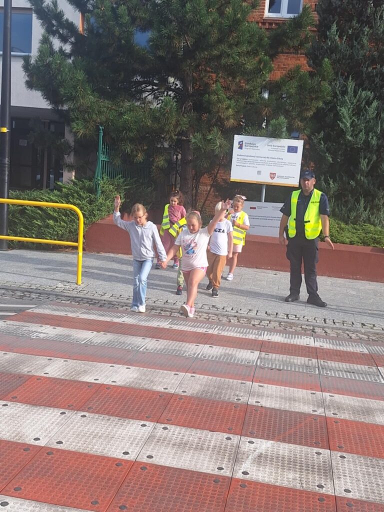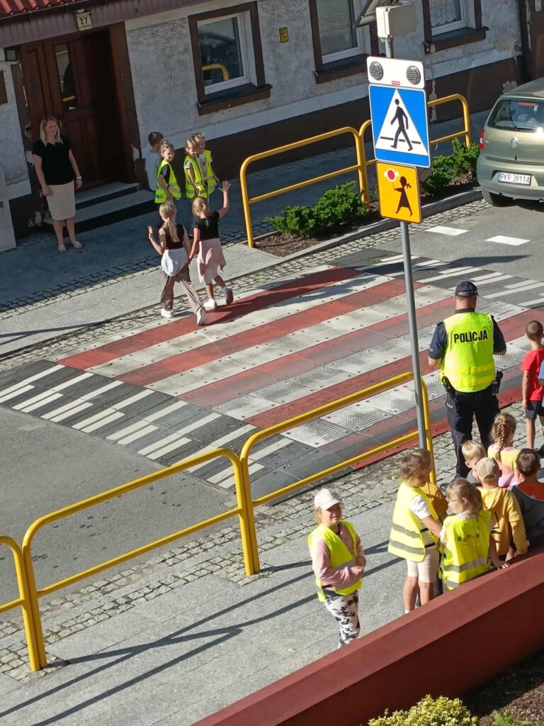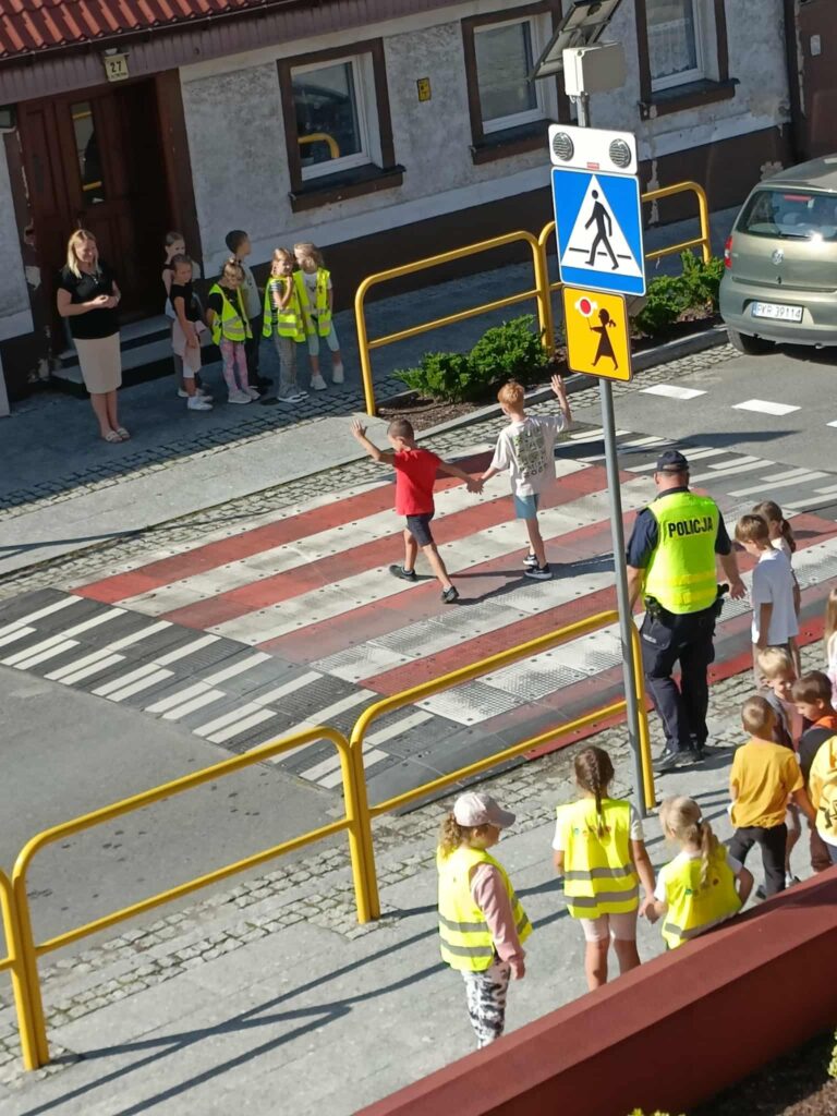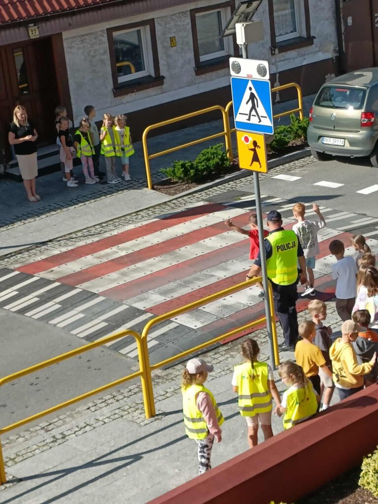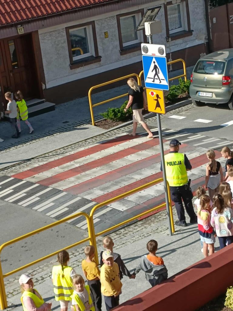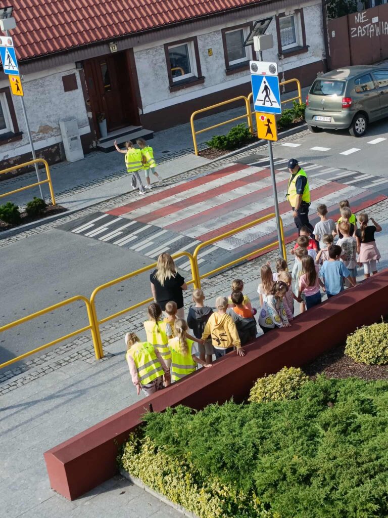 prawidłowo poruszać się po chodniku 🚶, w jaki sposób bezpiecznie przechodzić przez jezdnię 🚸 oraz jak ważne jest noszenie elementów odblaskowych ✨.