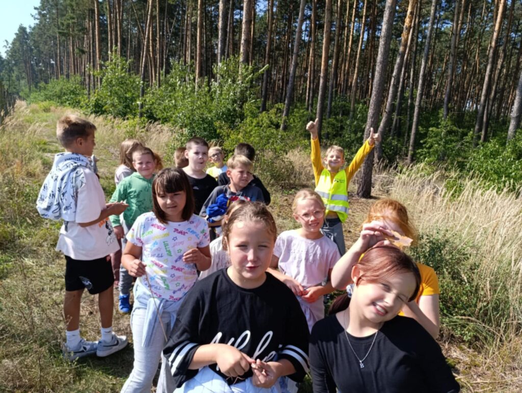 W ramach zajęć edukacyjnych uczniowie 3 b uczestniczyli w wyjściu do pobliskiego lasu