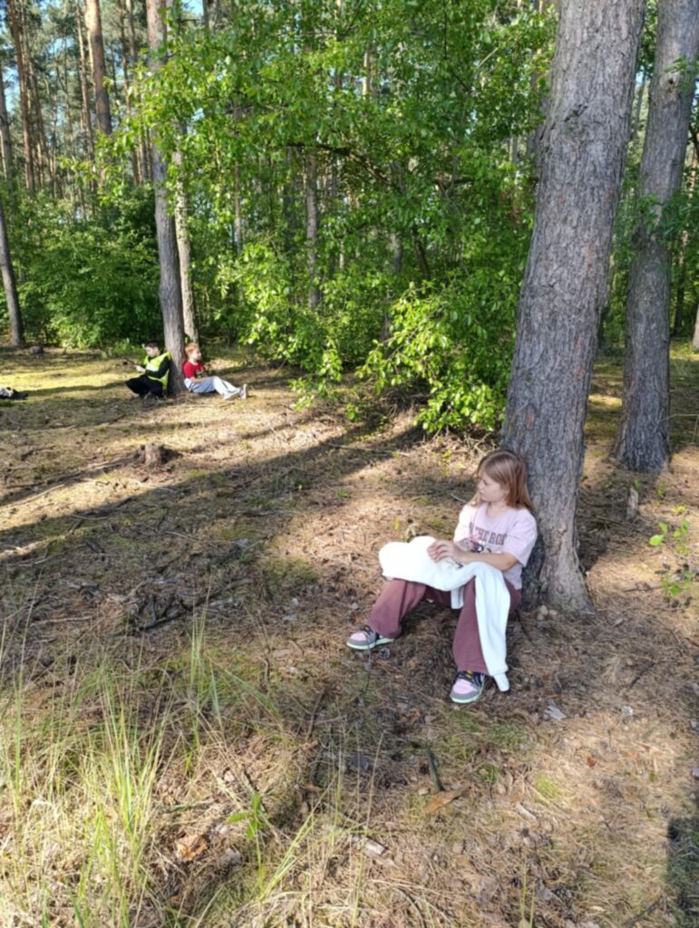 . Celem spotkania było bezpośrednie obcowanie z przyrodą, rozwijanie wrażliwości ekologicznej oraz integracja zespołu klasowego. Uczniowie spędzili czas na świeżym powietrzu, obcując bezpośrednio z przyrodą. Podczas zajęć w lesie dzieci łączyły się w pary i małe grupy, co sprzyjało współpracy i integracji. Angażując wszystkie zmysły, uczestniczyły w zabawach rozwijających uważność i wrażliwość na otaczający świat. Z darów lasu tworzyły kolorowe mandale, a czas spędzony przy drzewach przyniósł im radość, chwilę oddechu i relaks. Opracowanie: A.M.