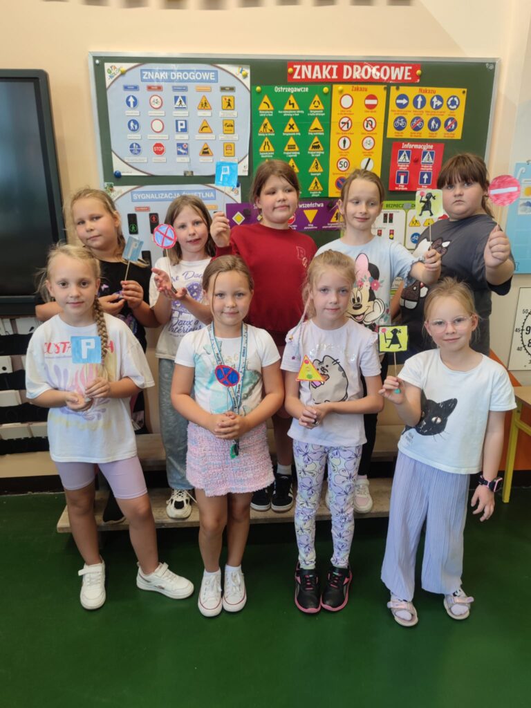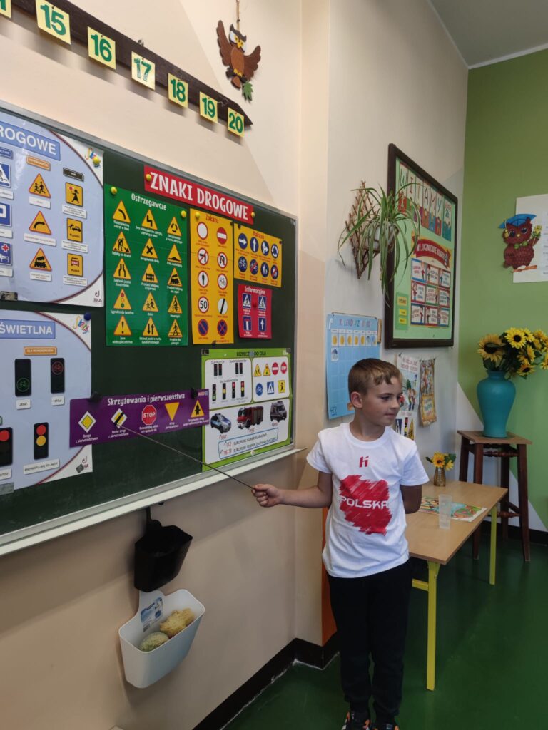 Na zajęciach rozpoznawali i nazywali znaki drogowe. Wybrali się też na wycieczkę, w czasie której obserwowali znaki drogowe w najbliższej okolicy. Dzieci przypomniały sobie również zasady bezpiecznego przejścia na drugą stronę drogi. Po powrocie do szkoły wykonały wybrane przez siebie znaki drogowe. Drugoklasiści doskonale wiedzą, że na drodze trzeba zachowywać się ostrożnie i przestrzegać przepisów, a wtedy wszyscy bezpiecznie dotrzemy do celu 🙂