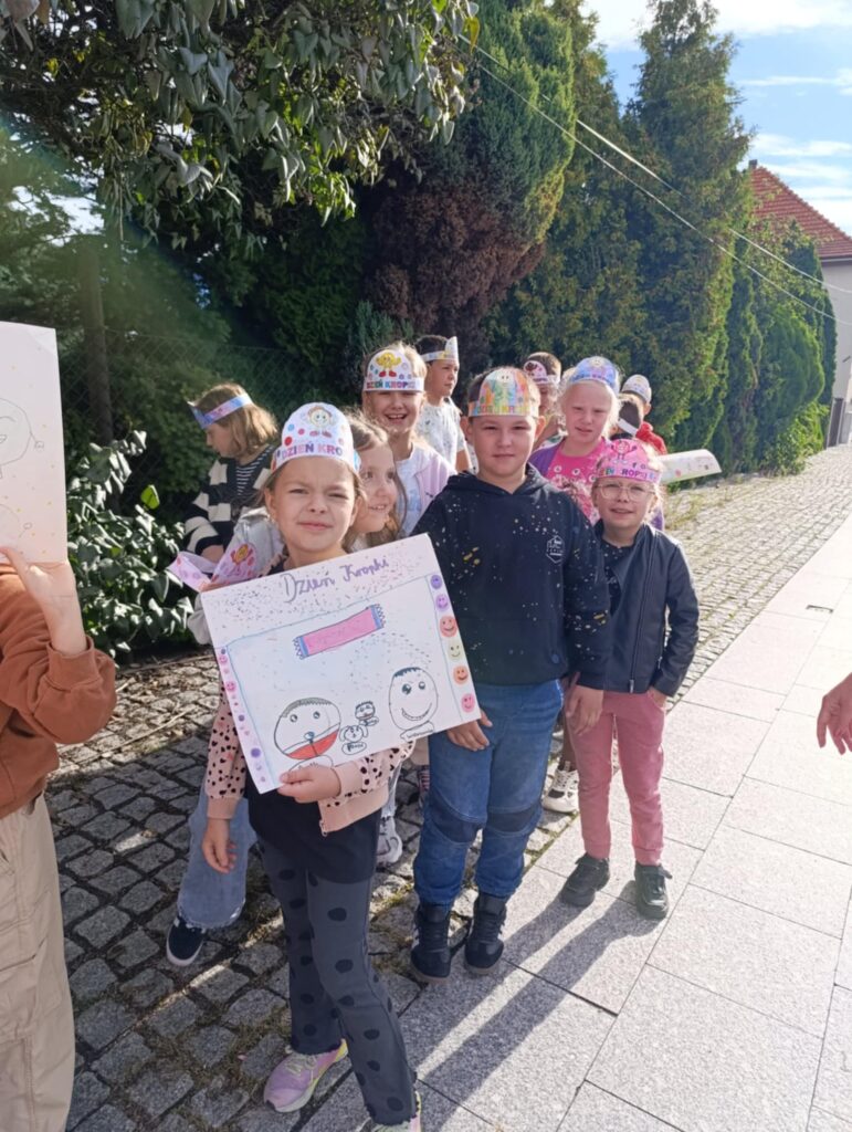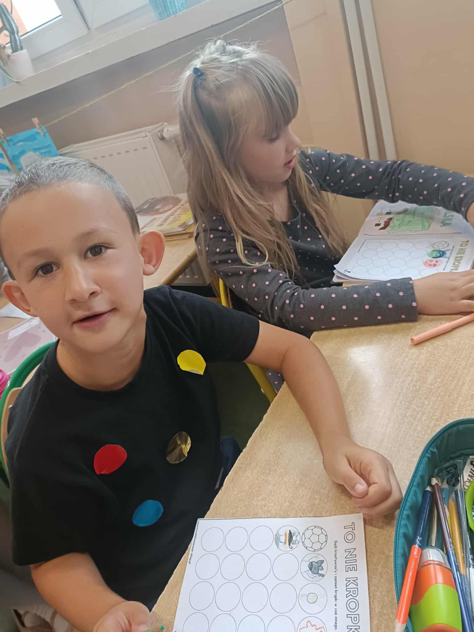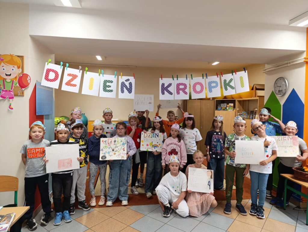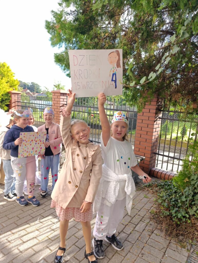 W dniu 15 września nasza szkoła świętowała Międzynarodowy Dzień Kropki, którego celem jest rozwijanie kreatywności, odwagi i wiary we własne możliwości. Uczniowie klas 1-3 wzięli udział w przemarszu kreatywności ulicami miasta, prezentując własnoręcznie wykonane opaski, plakaty i kolorowe kropkowe ozdoby. W czasie wydarzenia dzieci uczestniczyły w zabawach rozwijających twórcze myślenie, takich jak tworzenie kropkowych obrazów, wymyślanie „kropkowych historii” oraz wspólne układanie wzorów z kolorowych kropek. Całe wydarzenie przebiegało w radosnej atmosferze, a uczniowie z dumą prezentowali swoje pomysły, udowadniając, że każdy ma w sobie talent i kreatywną moc, którą warto odkrywać i rozwijać.