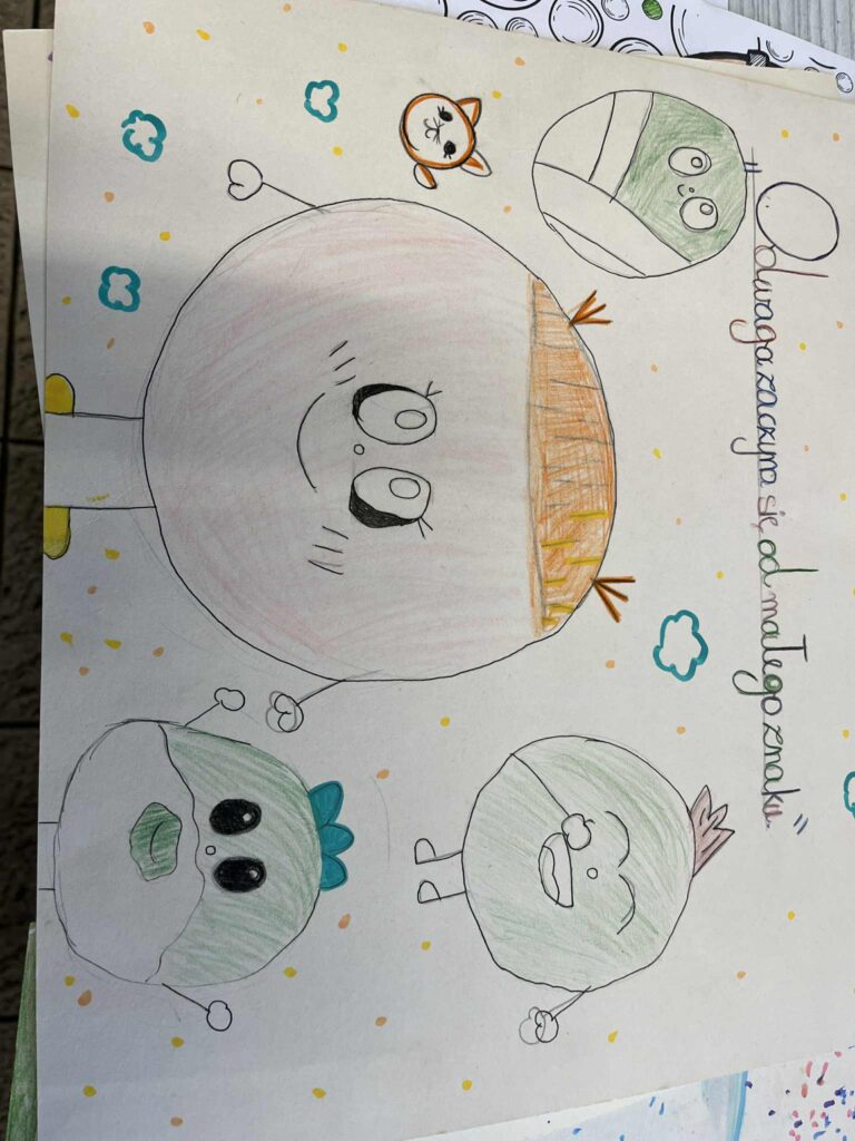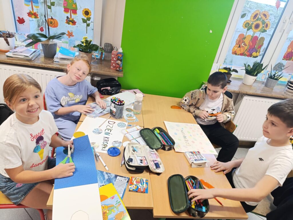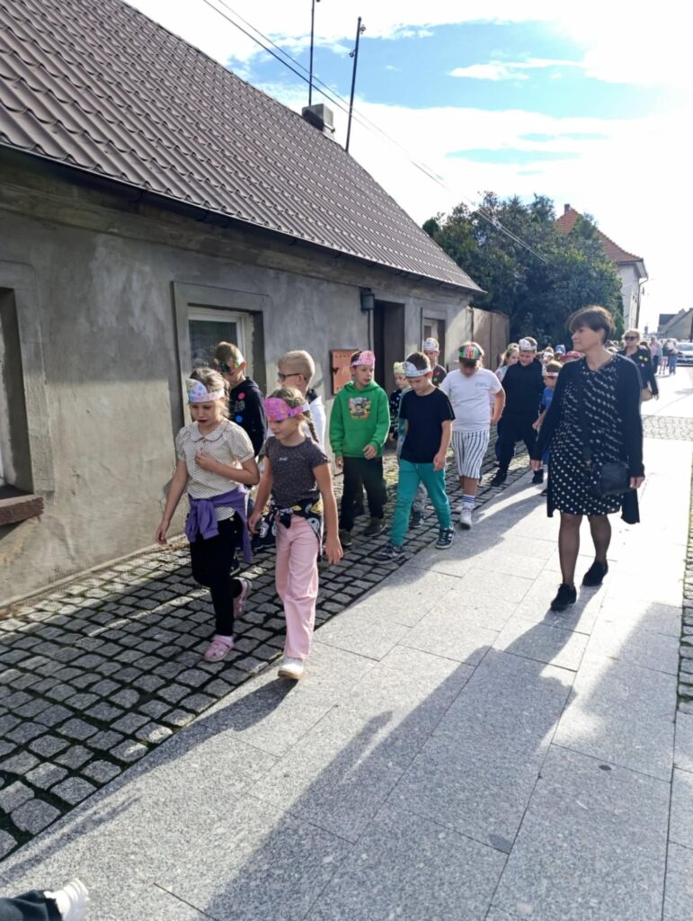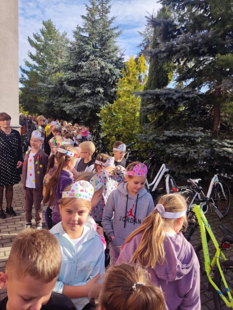 W dniu 15 września nasza szkoła świętowała Międzynarodowy Dzień Kropki, którego celem jest rozwijanie kreatywności, odwagi i wiary we własne możliwości. Uczniowie klas 1-3 wzięli udział w przemarszu kreatywności ulicami miasta, prezentując własnoręcznie wykonane opaski, plakaty i kolorowe kropkowe ozdoby. W czasie wydarzenia dzieci uczestniczyły w zabawach rozwijających twórcze myślenie, takich jak tworzenie kropkowych obrazów, wymyślanie „kropkowych historii” oraz wspólne układanie wzorów z kolorowych kropek. Całe wydarzenie przebiegało w radosnej atmosferze, a uczniowie z dumą prezentowali swoje pomysły, udowadniając, że każdy ma w sobie talent i kreatywną moc, którą warto odkrywać i rozwijać.