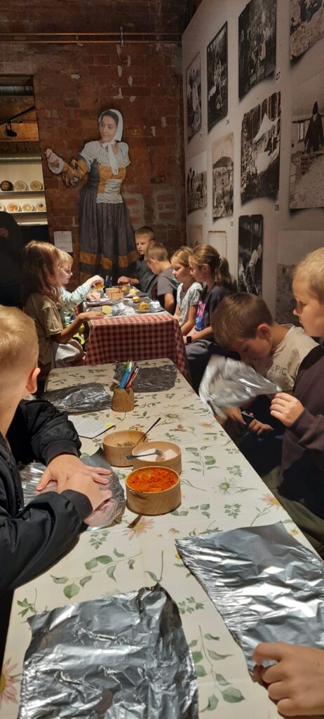 Kolejnym fascynującym miejscem było Muzeum Pyry, gdzie dzieci dowiedziały się o historii i wykorzystaniu ziemniaka w polskiej kuchni. Zajęcia były połączone z degustacją potraw przygotowanych z tego składnika – uczniowie mogli spróbować tradycyjnych poznańskich dań.