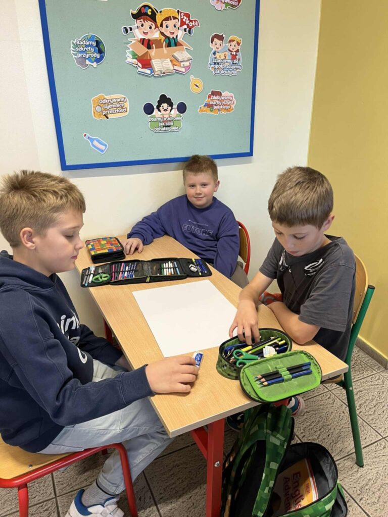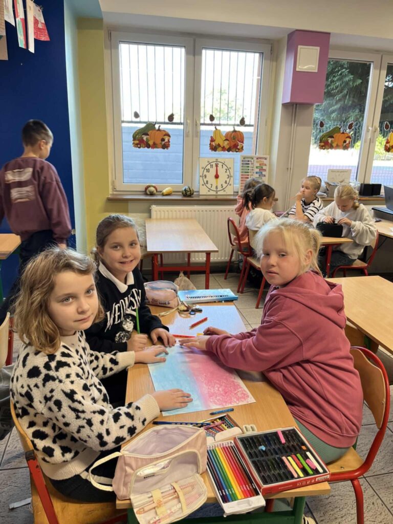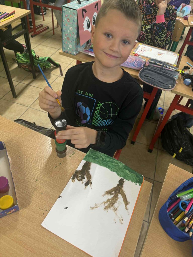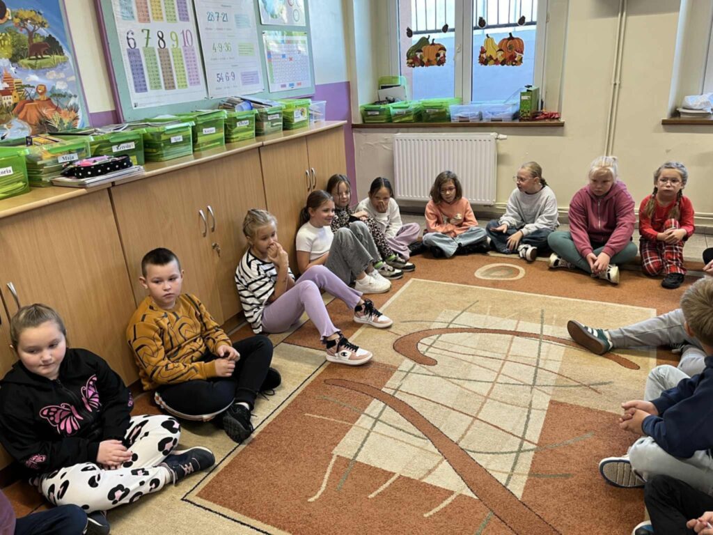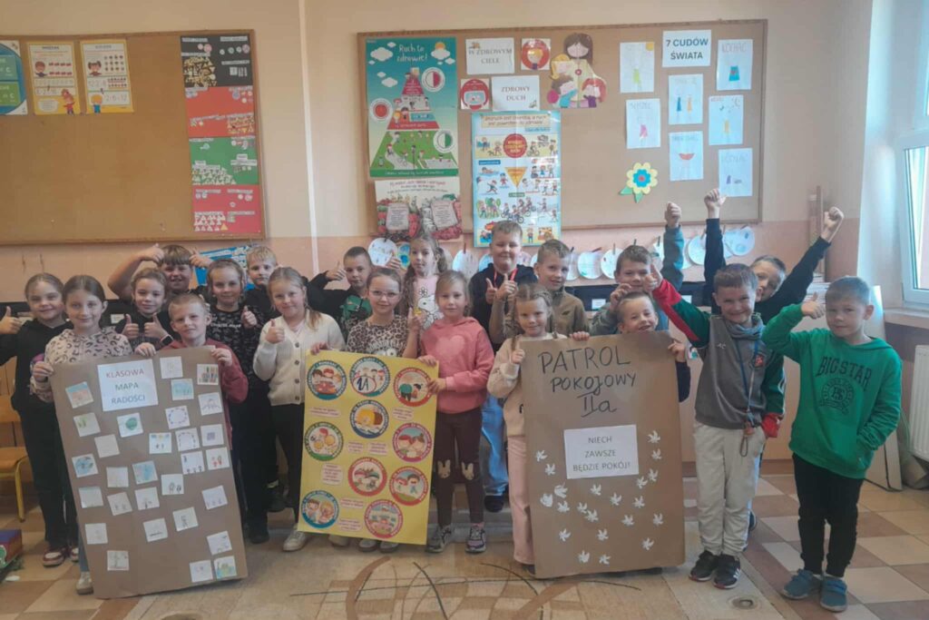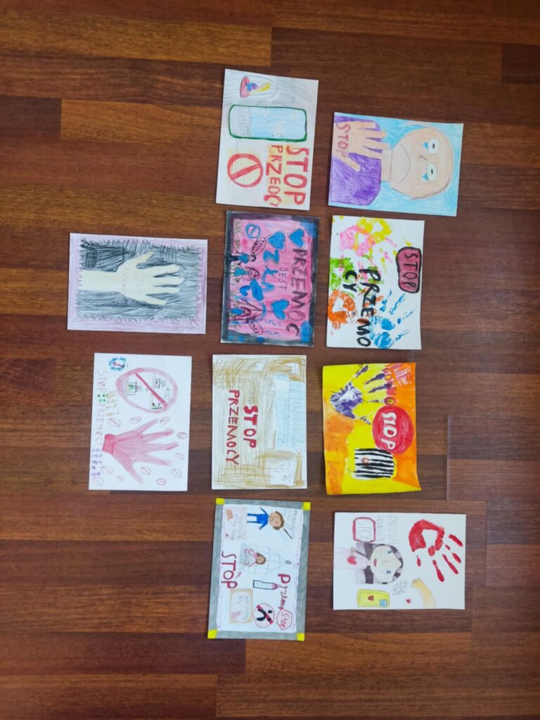 W dniach 29 września – 3 października uczniowie klas 1–3 wzięli udział w zajęciach profilaktycznych poświęconych przeciwdziałaniu przemocy. Podczas spotkań dzieci obejrzały krótkie filmy edukacyjne, a następnie rozmawiały o tym, jak można reagować na przemoc i jak budować przyjazną atmosferę w klasie. Uczniowie przygotowali także kolorowe plakaty pod hasłem „Stop przemocy” oraz liście z życzliwymi zdaniami, które utworzyły drzewko dobroci. Powstały również prace plastyczne przypominające, że warto być miłym i pomocnym dla innych.
