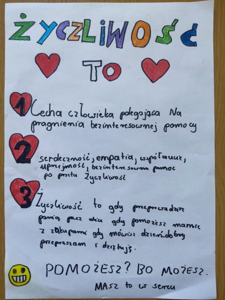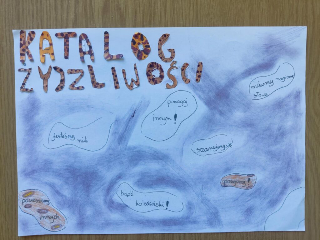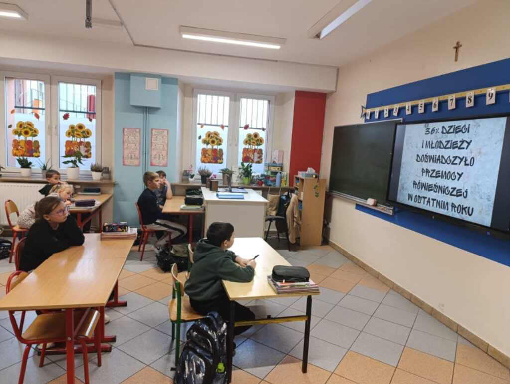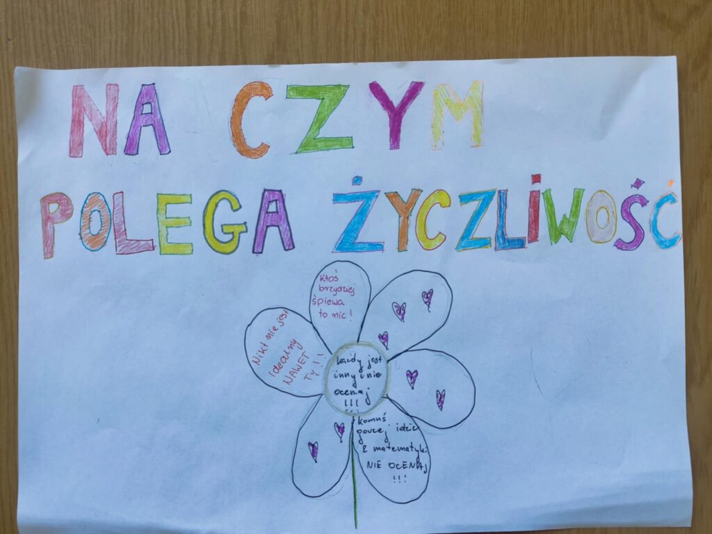 W klasach 4–8 odbyły się pogadanki i projekcje filmów dotyczących przemocy rówieśniczej oraz cyberprzemocy. Podczas zajęć uczniowie dyskutowali o sposobach radzenia sobie z trudnymi sytuacjami, a także o tym, jak chronić się w sieci. Wspólnie opracowali Kodeksy Życzliwości, które będą przypominały o tym, że szacunek, empatia i dobra komunikacja są najlepszą drogą do budowania bezpiecznej i przyjaznej szkoły.