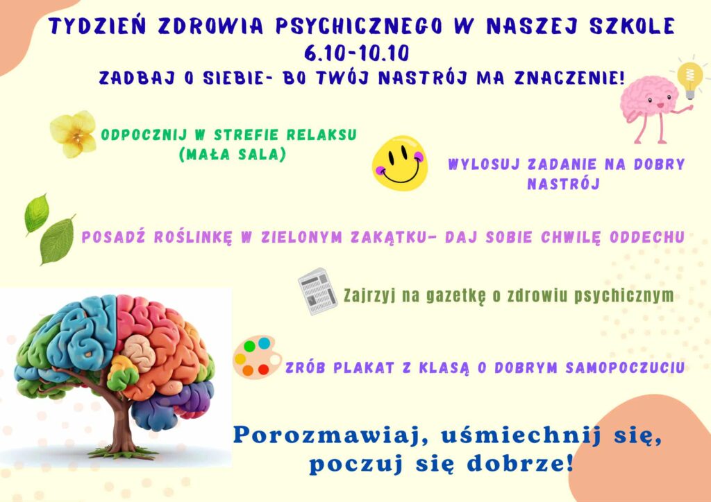 Tydzień zdrowia psychicznego. Nawigacja wpisu « CZYTAMY!!!Nasza szkoła bierze udział w projekcie „Wsparcie edukacji matematycznej z użyciem narzędzia AI zeszyt.online” »