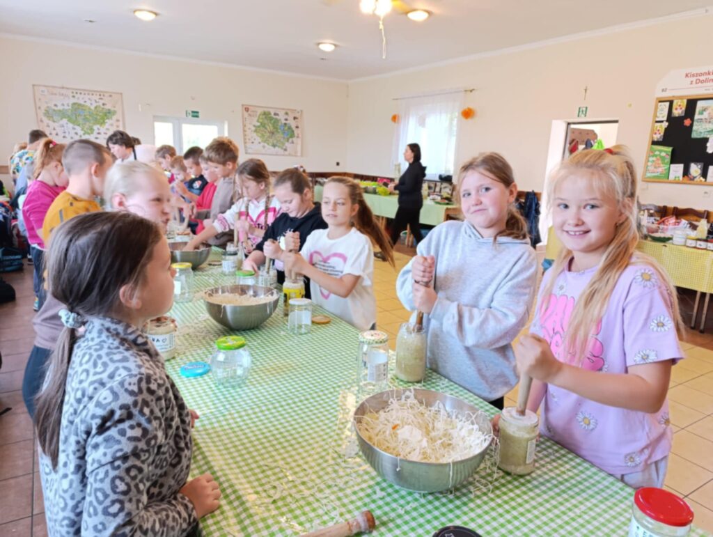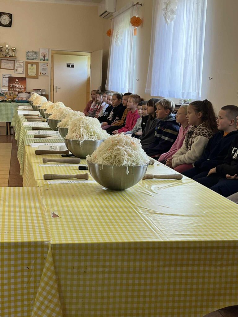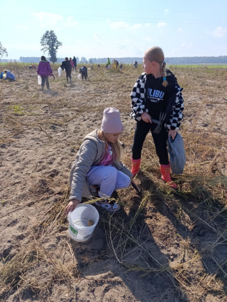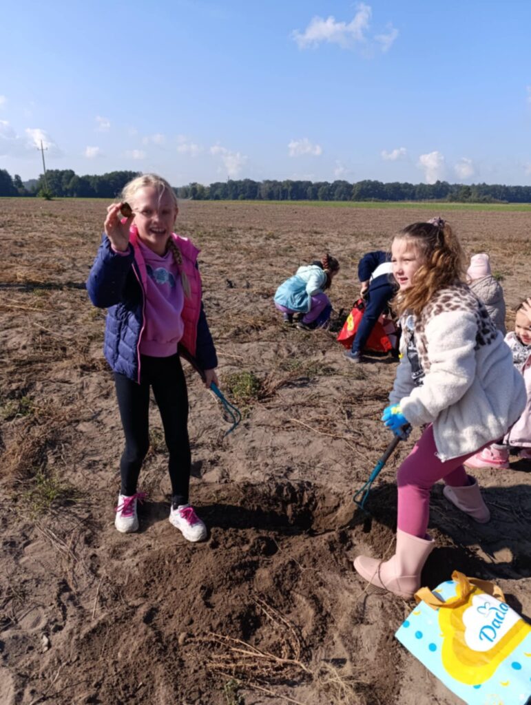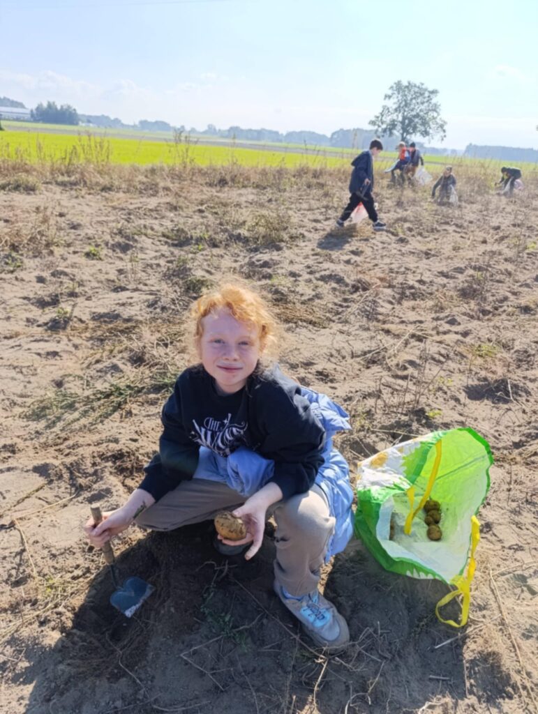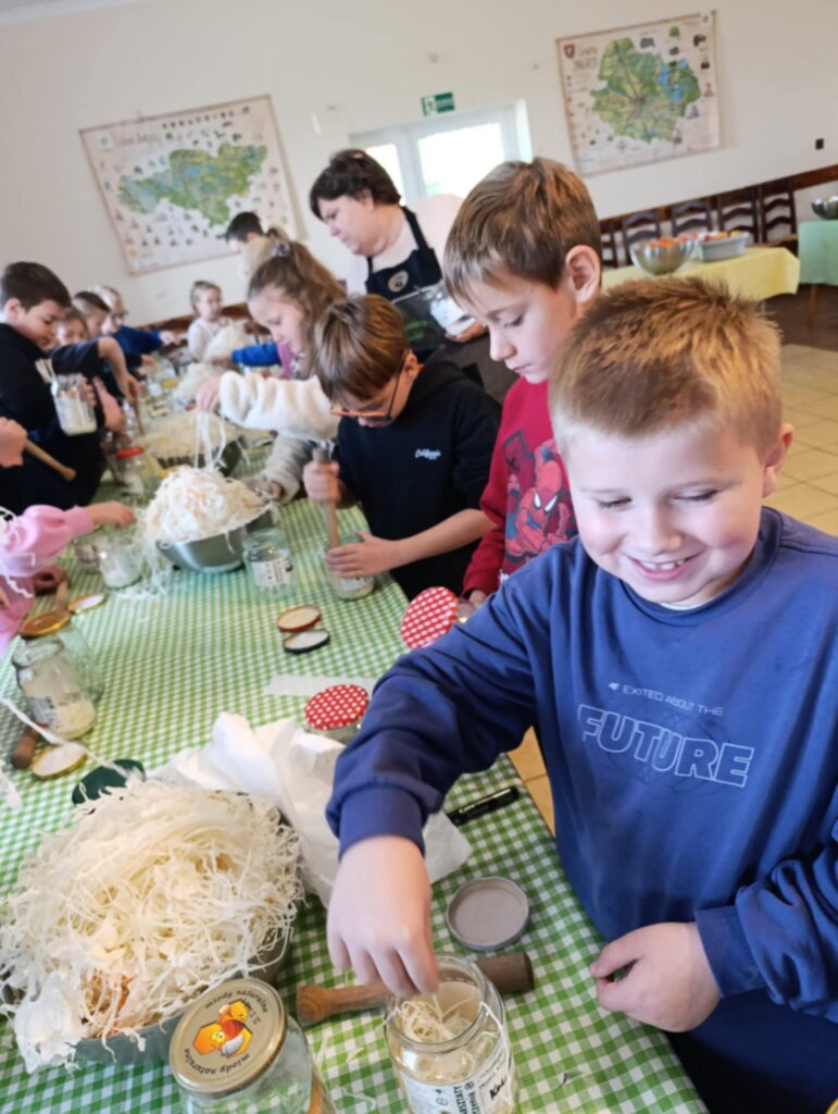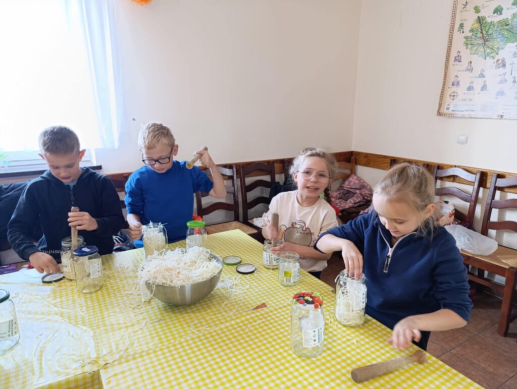 Uczniowie klasy 3a i 3b wybrali się na niezwykłą przygodę do Gospodarstwa Rolnego M. Sznajder w Karnicach. Program dnia obfitował w atrakcje – dzieci samodzielnie przygotowały słoiki z kiszoną kapustą, zrobiły surówkę i spróbowały kolorowych kiszonek. Ogromną frajdę sprawiło im także ognisko, podczas którego królowały pyry z gzikiem, swojska kiełbasa, chleb na zakwasie, masełko czosnkowe i aromatyczna herbata piernikowa. Uczniowie zwiedzili gospodarstwo oraz wzięli udział w wykopkach i samozbiorach – torby pełne ziemniaków i dorodnych buraków były najlepszą pamiątką z wycieczki. Nie zabrakło również zabaw na placu zabaw i odpoczynku na belach słomy. Na zakończenie każdy uczestnik otrzymał certyfikat „Kiszonkowego Masterszefa” oraz pamiątkowy warzywny tatuaż. Dzieci wróciły z wycieczki zmęczone, trochę ubrudzone, ale szczęśliwe i pełne nowych doświadczeń!