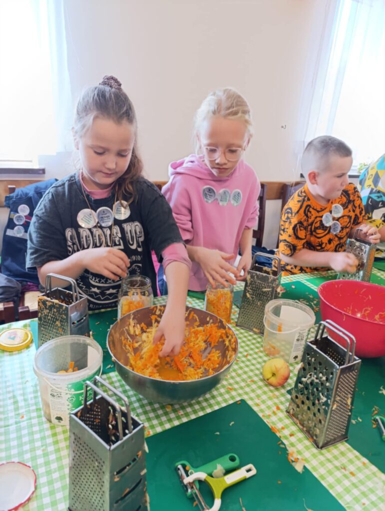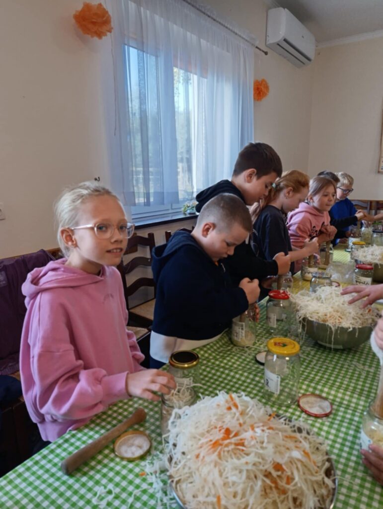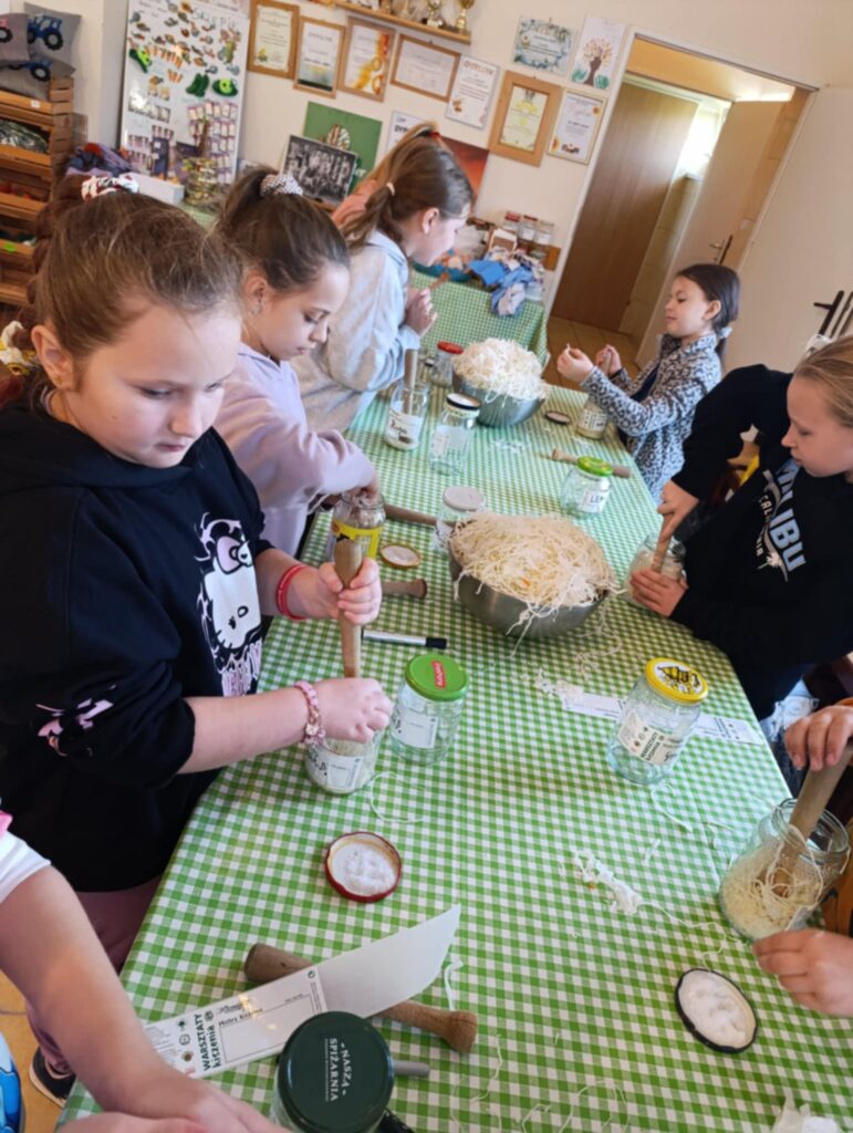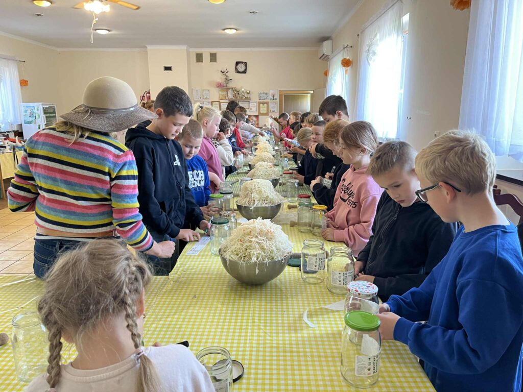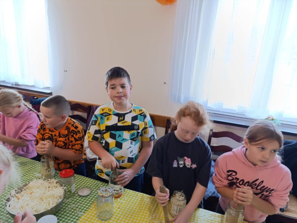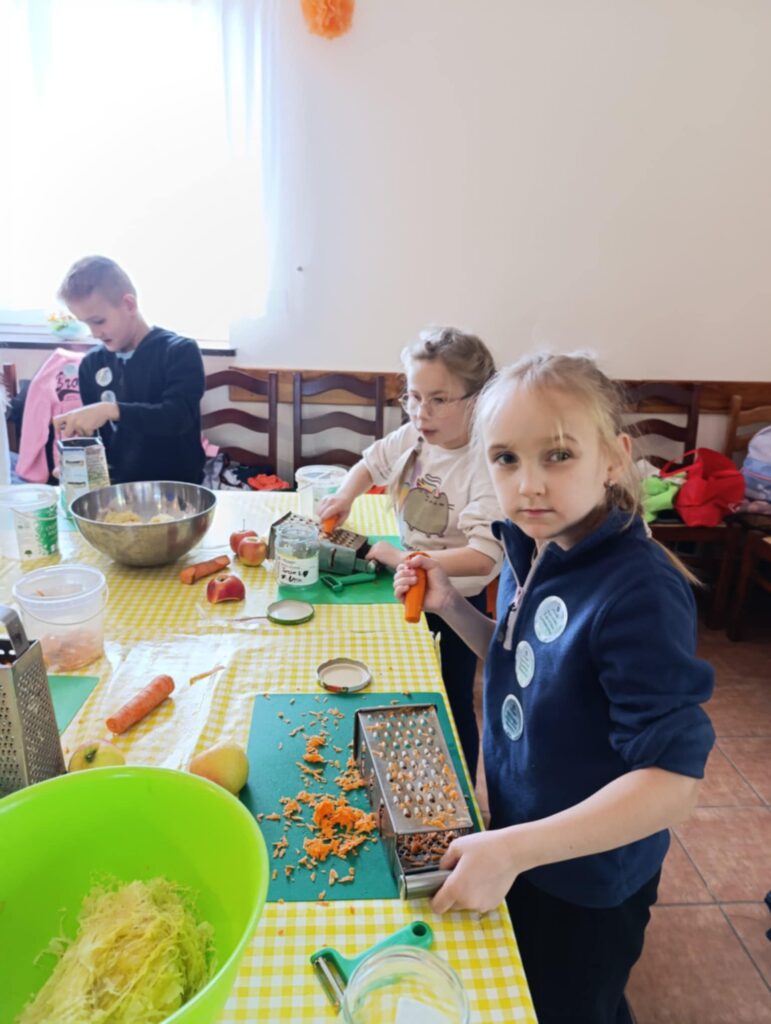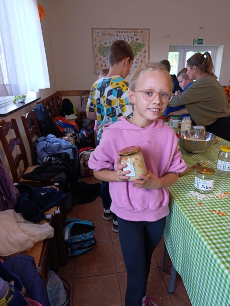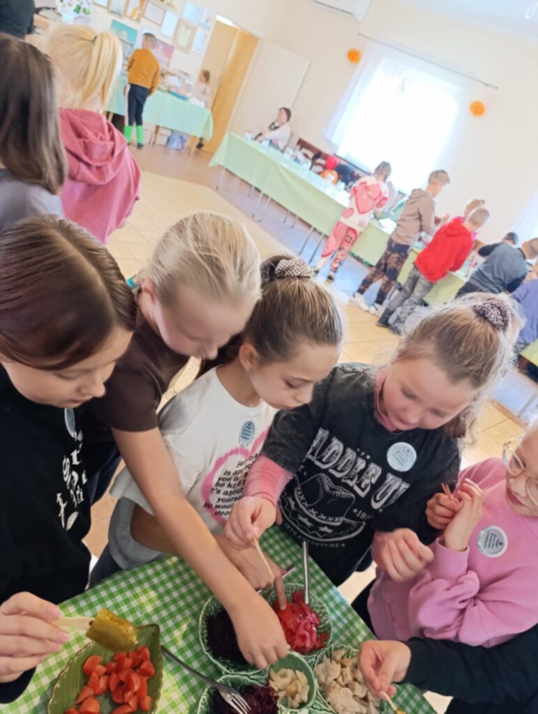 Uczniowie klasy 3a i 3b wybrali się na niezwykłą przygodę do Gospodarstwa Rolnego M. Sznajder w Karnicach. Program dnia obfitował w atrakcje – dzieci samodzielnie przygotowały słoiki z kiszoną kapustą, zrobiły surówkę i spróbowały kolorowych kiszonek. Ogromną frajdę sprawiło im także ognisko, podczas którego królowały pyry z gzikiem, swojska kiełbasa, chleb na zakwasie, masełko czosnkowe i aromatyczna herbata piernikowa. Uczniowie zwiedzili gospodarstwo oraz wzięli udział w wykopkach i samozbiorach – torby pełne ziemniaków i dorodnych buraków były najlepszą pamiątką z wycieczki. Nie zabrakło również zabaw na placu zabaw i odpoczynku na belach słomy. Na zakończenie każdy uczestnik otrzymał certyfikat „Kiszonkowego Masterszefa” oraz pamiątkowy warzywny tatuaż. Dzieci wróciły z wycieczki zmęczone, trochę ubrudzone, ale szczęśliwe i pełne nowych doświadczeń!