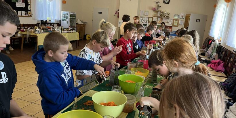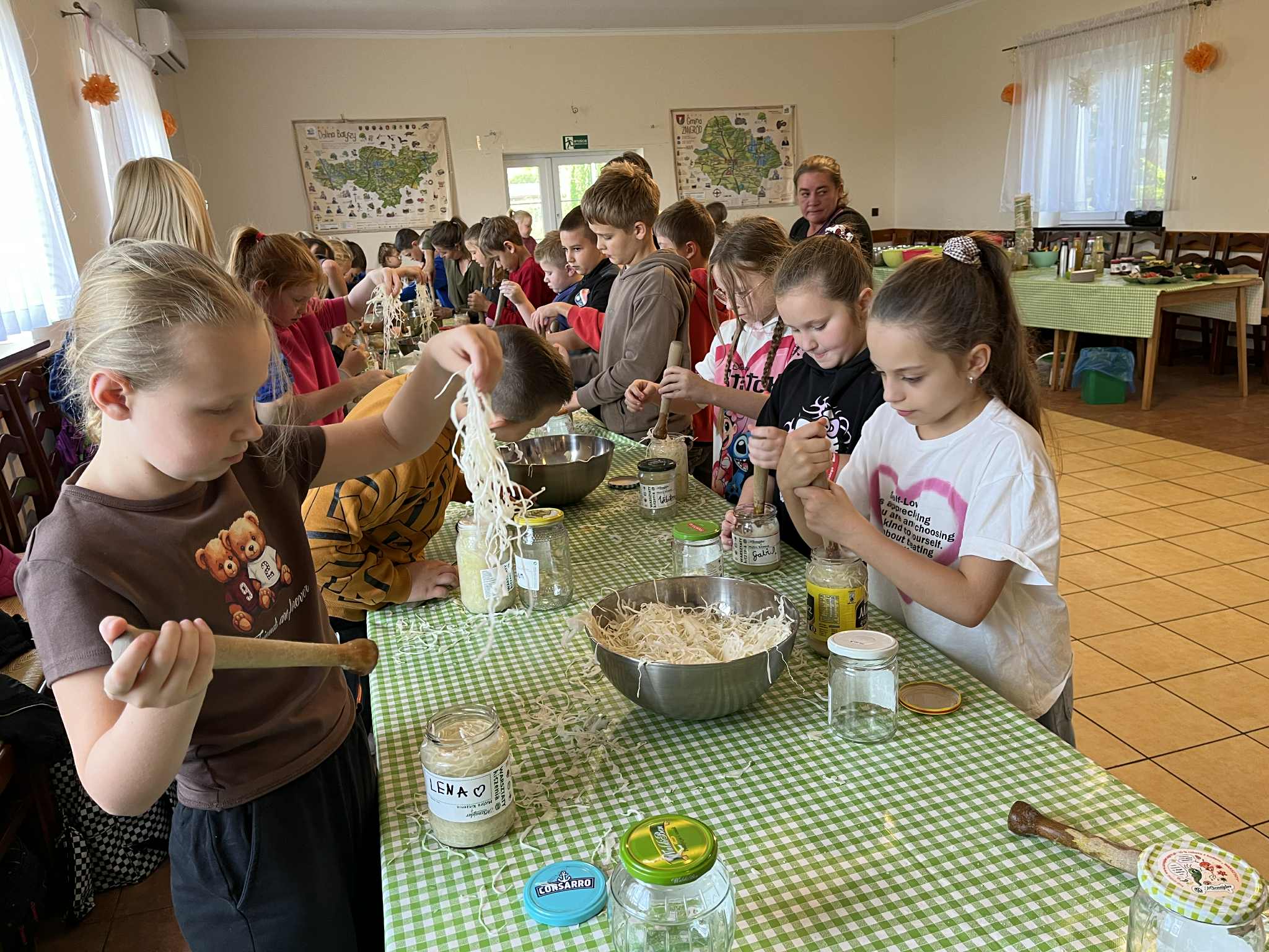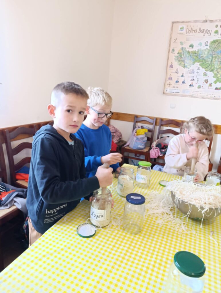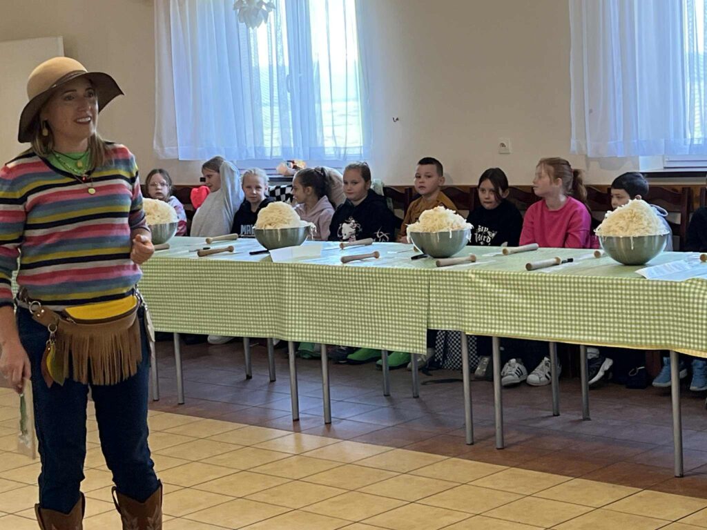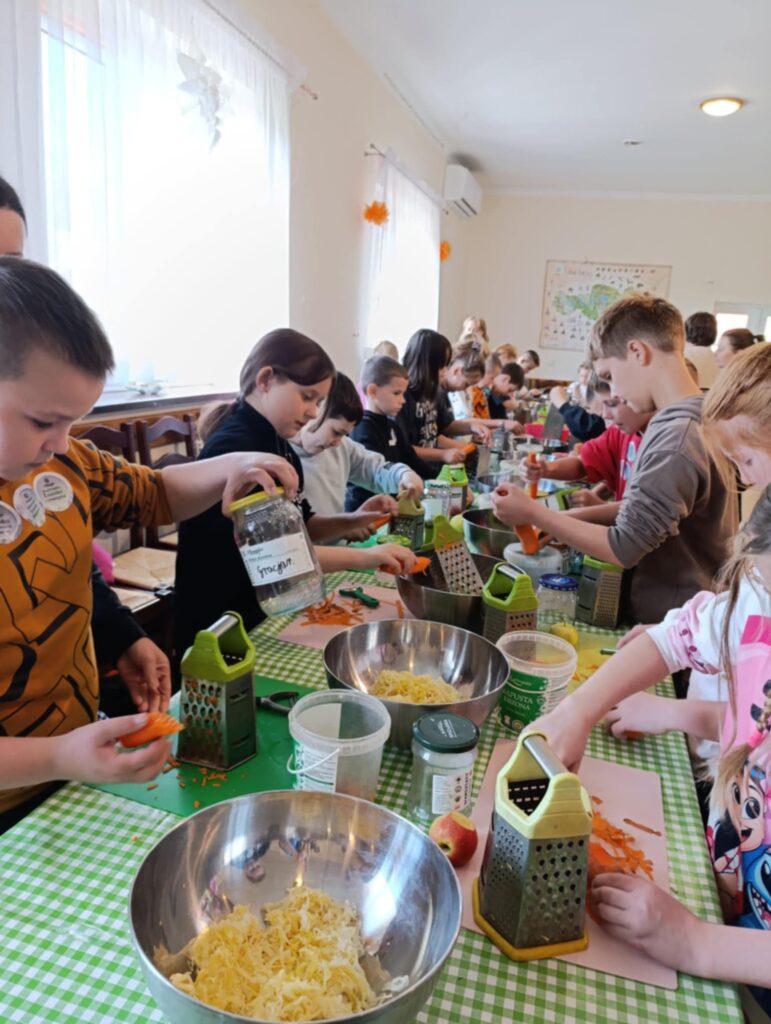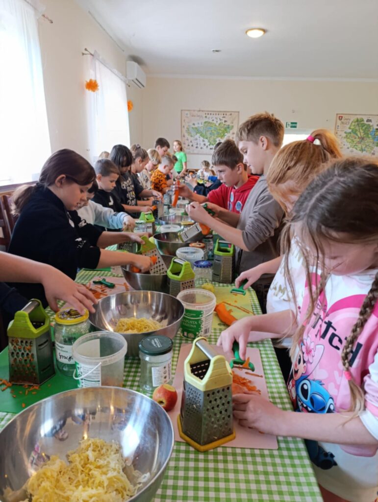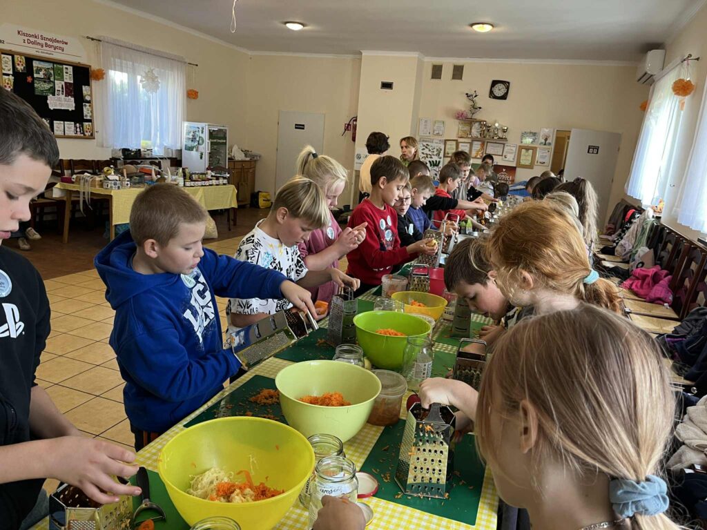 Uczniowie klasy 3a i 3b wybrali się na niezwykłą przygodę do Gospodarstwa Rolnego M. Sznajder w Karnicach. Program dnia obfitował w atrakcje – dzieci samodzielnie przygotowały słoiki z kiszoną kapustą, zrobiły surówkę i spróbowały kolorowych kiszonek. Ogromną frajdę sprawiło im także ognisko, podczas którego królowały pyry z gzikiem, swojska kiełbasa, chleb na zakwasie, masełko czosnkowe i aromatyczna herbata piernikowa. Uczniowie zwiedzili gospodarstwo oraz wzięli udział w wykopkach i samozbiorach – torby pełne ziemniaków i dorodnych buraków były najlepszą pamiątką z wycieczki. Nie zabrakło również zabaw na placu zabaw i odpoczynku na belach słomy. Na zakończenie każdy uczestnik otrzymał certyfikat „Kiszonkowego Masterszefa” oraz pamiątkowy warzywny tatuaż. Dzieci wróciły z wycieczki zmęczone, trochę ubrudzone, ale szczęśliwe i pełne nowych doświadczeń!