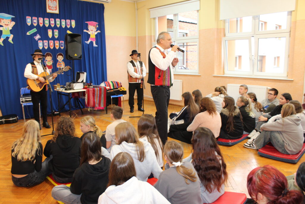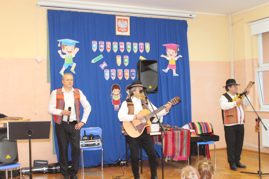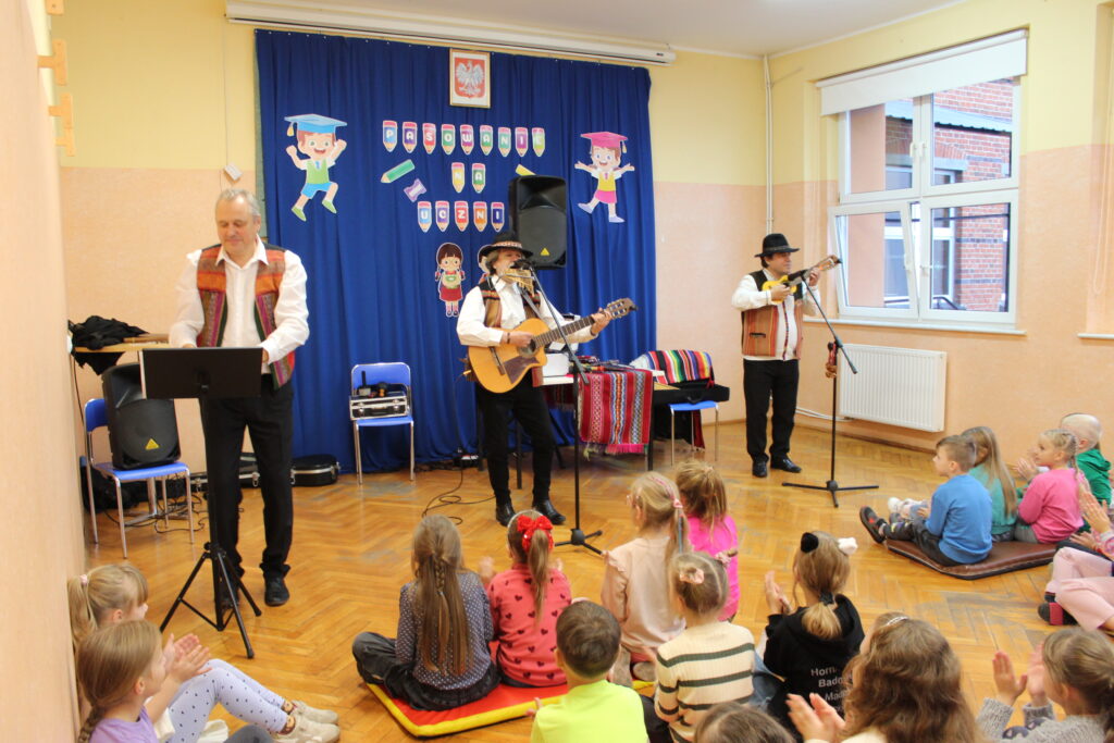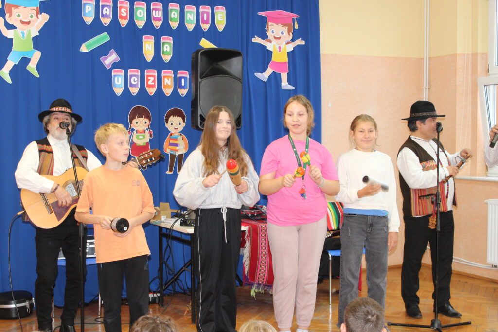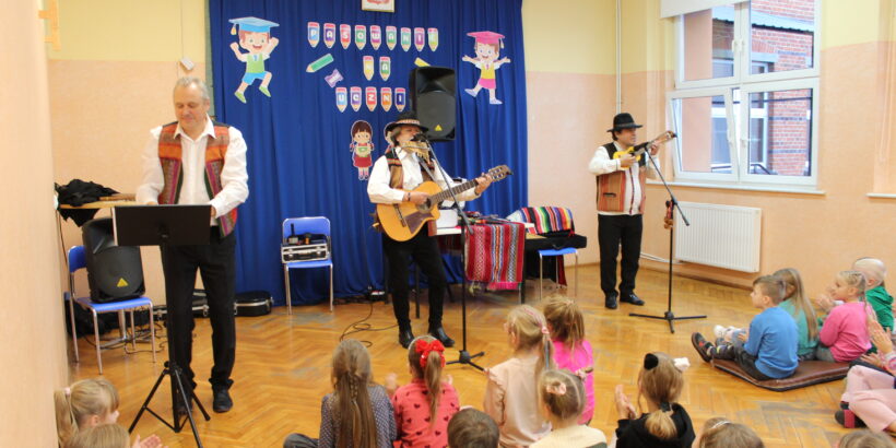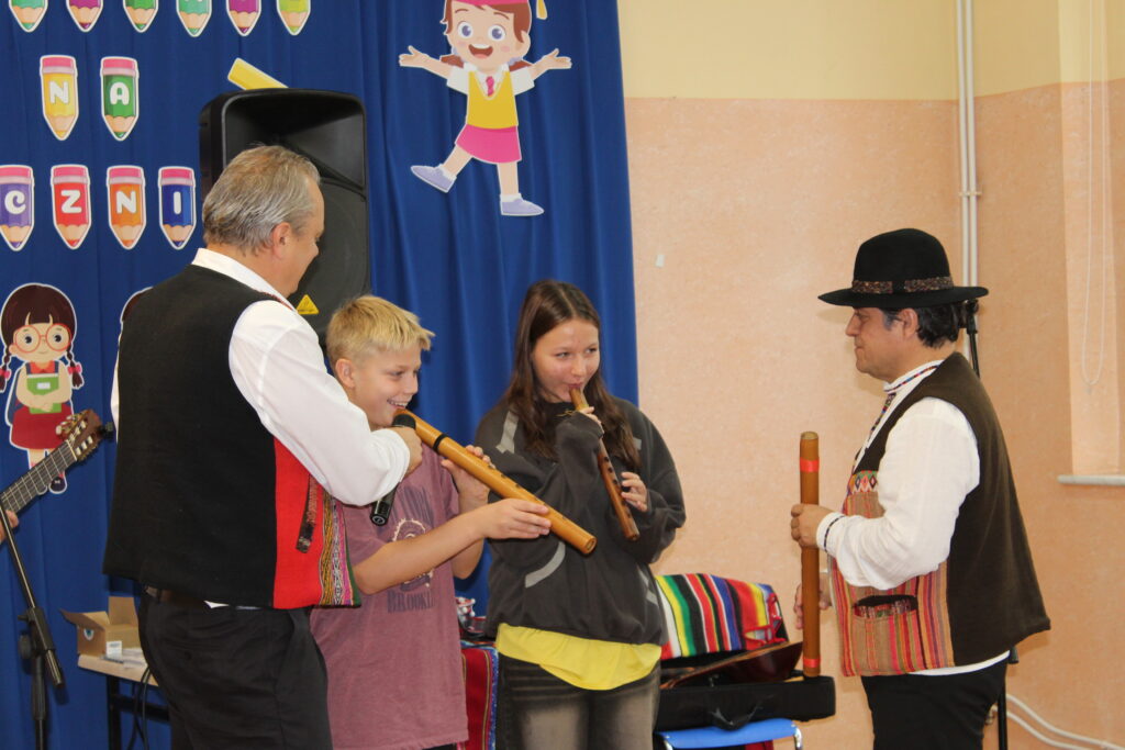 Dziś w naszej szkole odbył się niezwykły koncert zespołu Kurakas – Wysłannicy Inków. Uczniowie mieli okazję poznać kulturę i muzykę Ameryki Południowej, usłyszeć tradycyjne instrumenty, takie jak fletnia Pana, charango czy bębny andyjskie, a także wziąć udział w muzycznej zabawie.