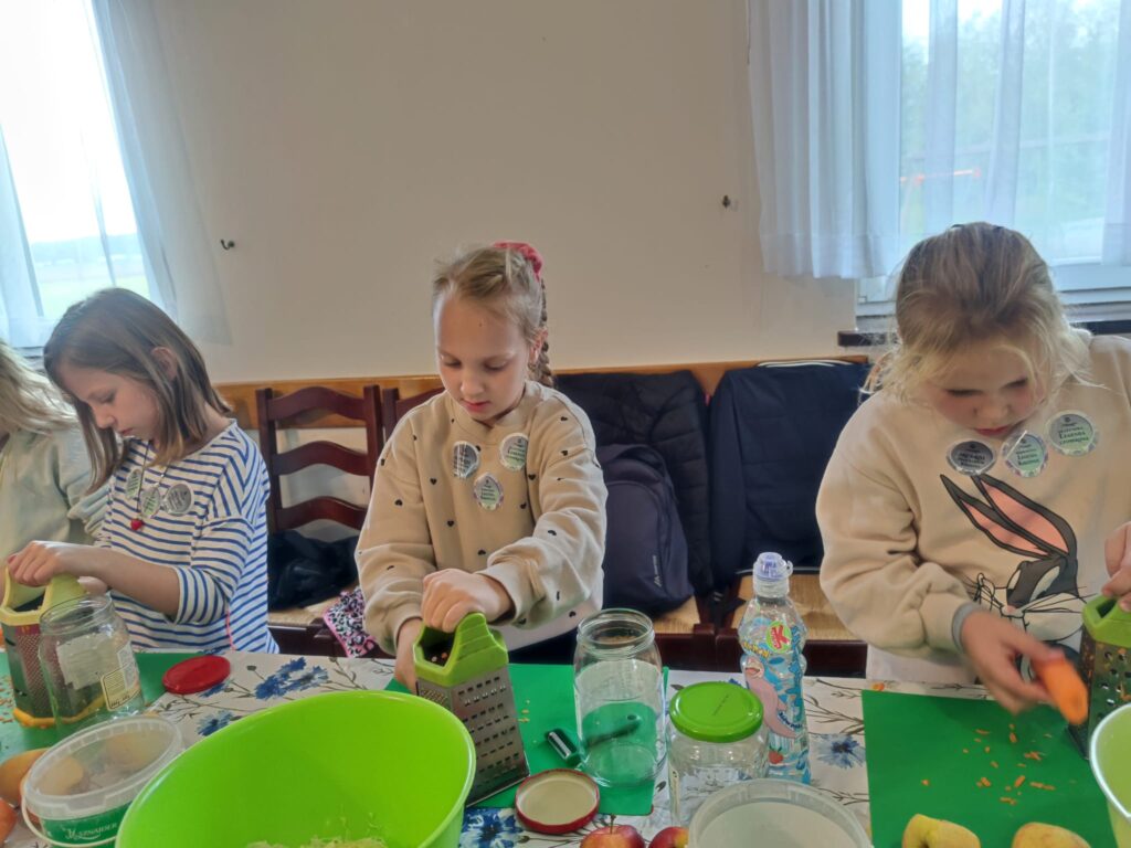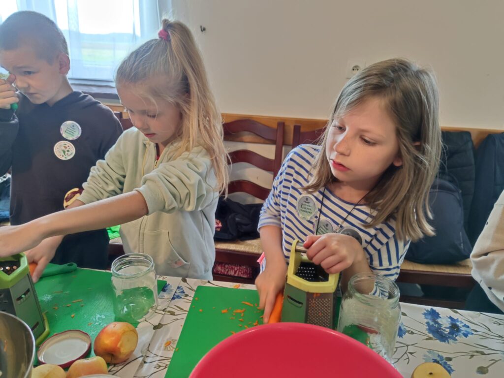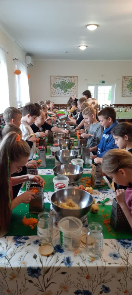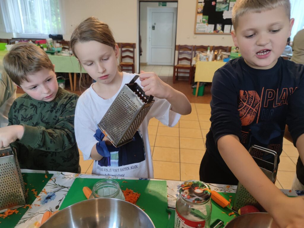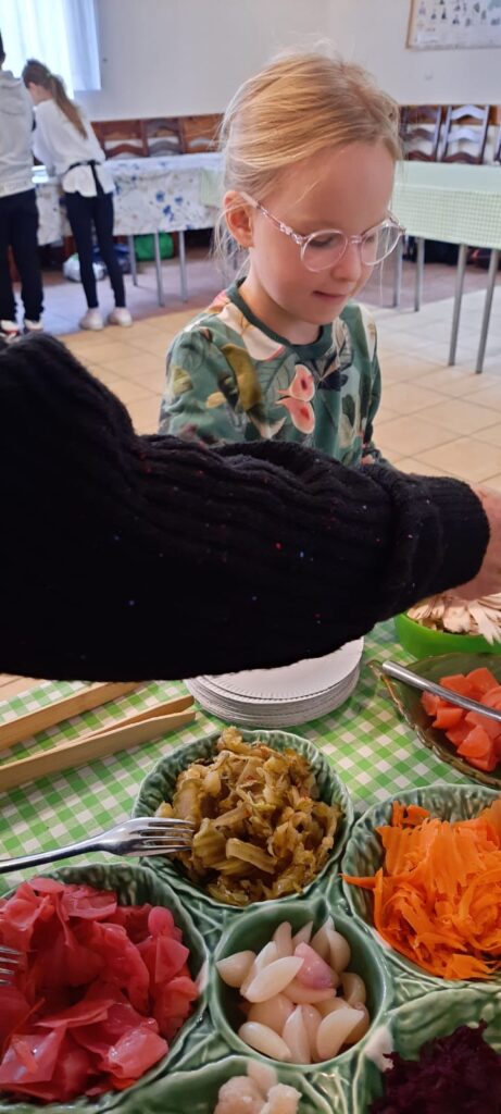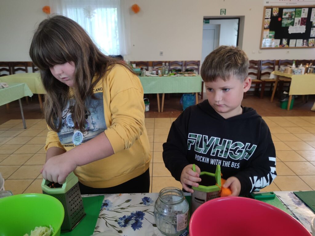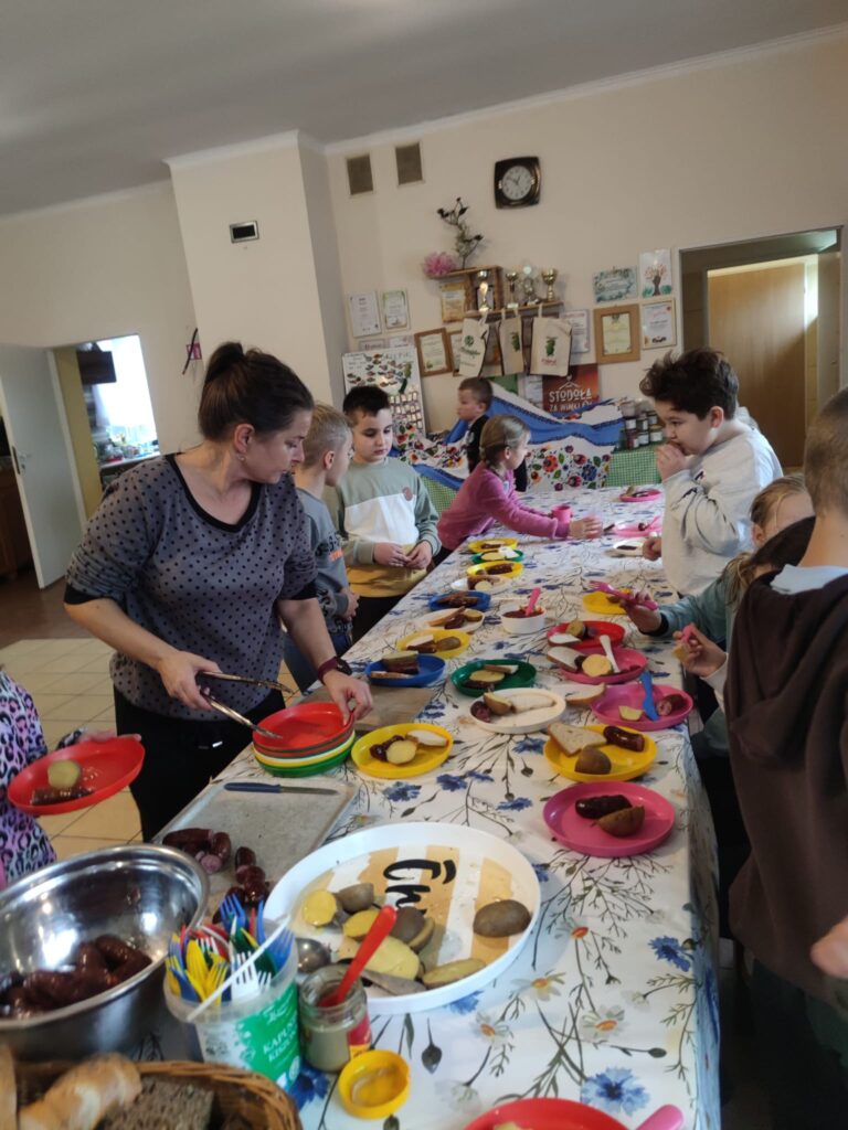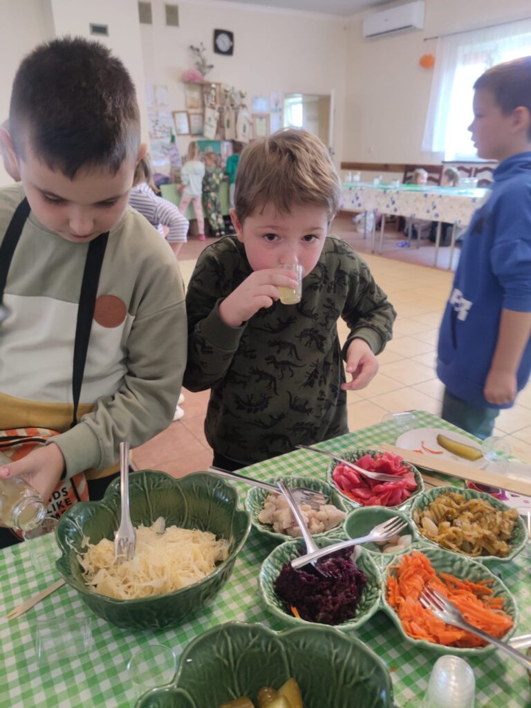Uczniowie klas 2b i 2c uczestniczyli w niezwykłych warsztatach kiszenia kapusty u Emilii Sznajder w Karnicach. Dzieci miały okazję własnoręcznie kisić kapustę, poznając tradycyjne metody przygotowywania tego zdrowego przetworu. Degustowały również kiszone smakołyki – ogórki, rzodkiewki, czosnek, marchewkę i kalafiora – przekonując się, że zdrowe może być naprawdę pyszne!