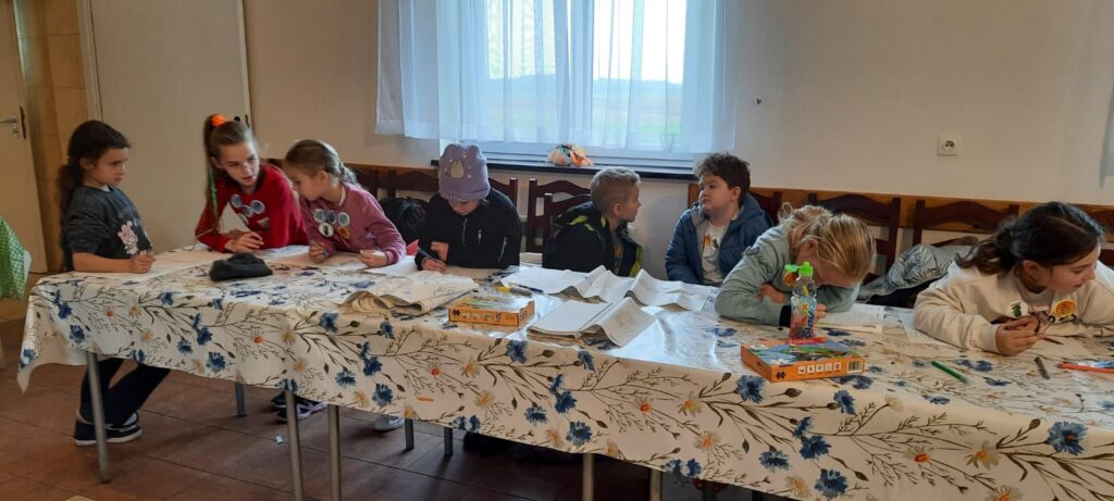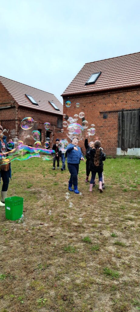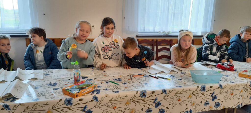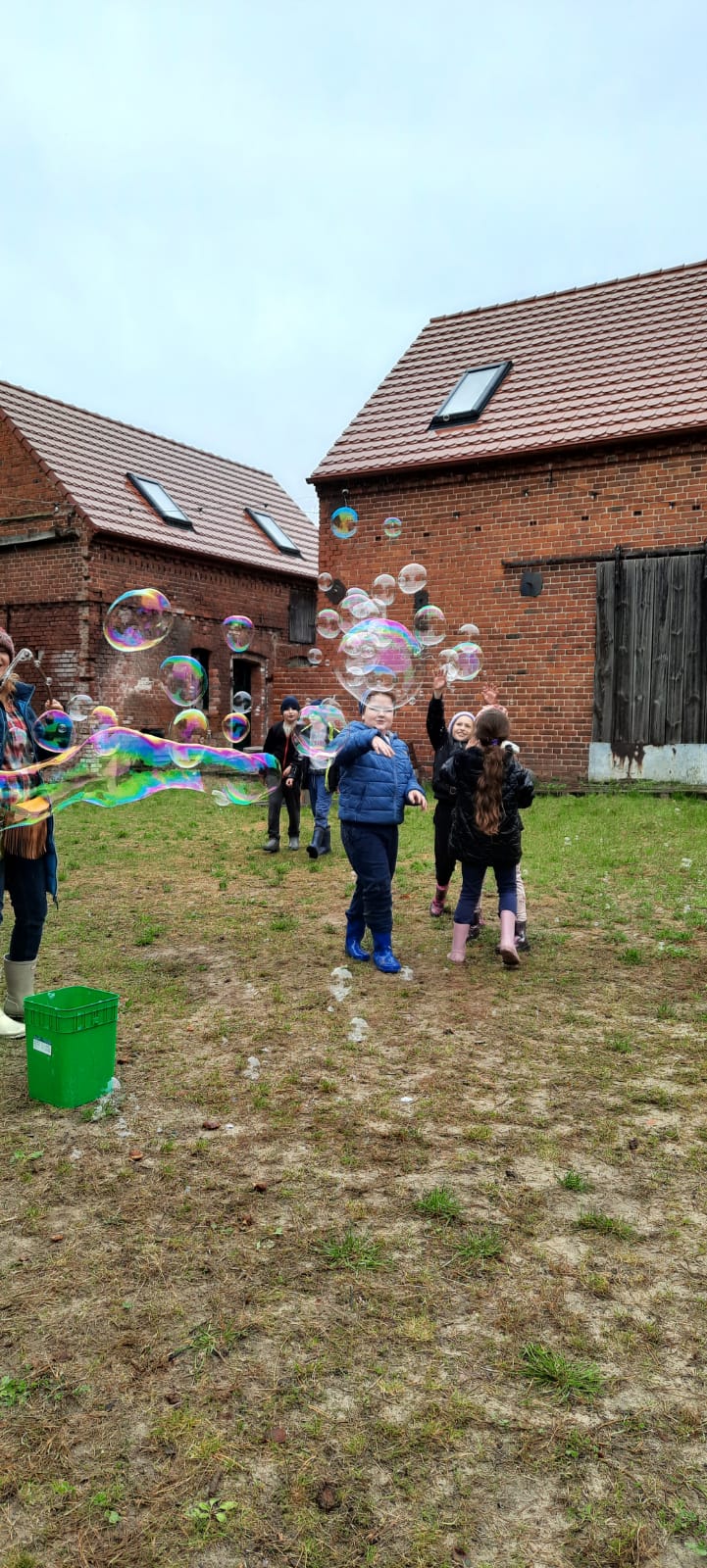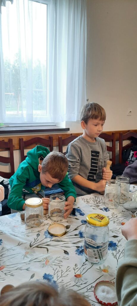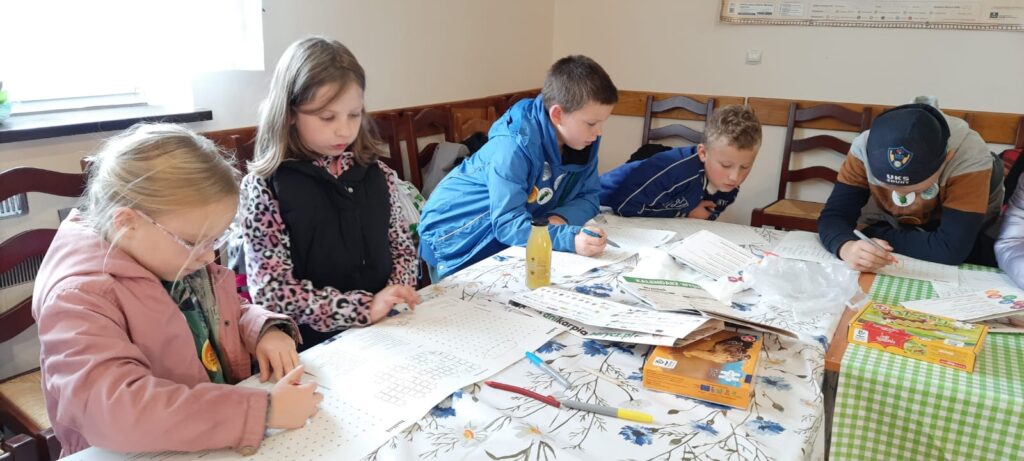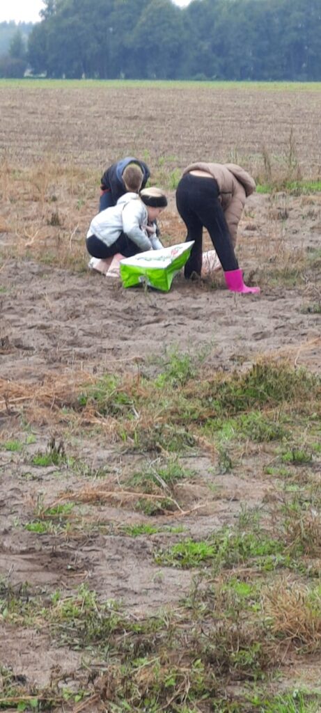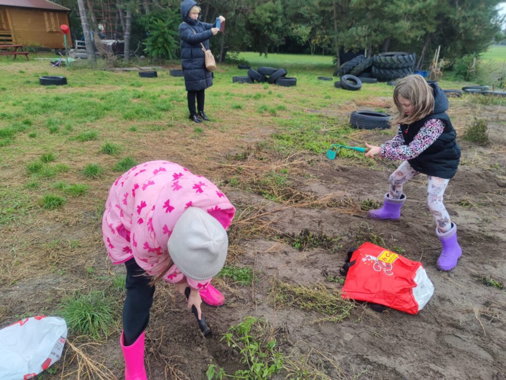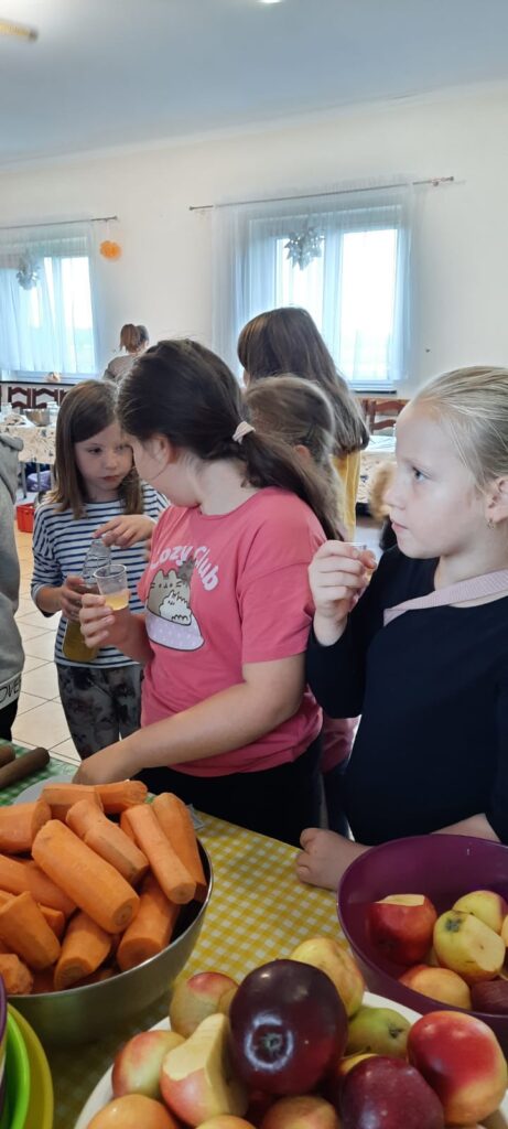 Po części warsztatowej przyszedł czas na aktywności na świeżym powietrzu. Była zabawa na placu zabaw, pieczenie kiełbasek przy ognisku, degustacja wiejskiego chleba, ziemniaków z gziką oraz innych lokalnych przysmaków. Jedną z największych atrakcji było samodzielne wykopywanie ziemniaków prosto z pola – dla wielu dzieci była to pierwsza taka przygoda!