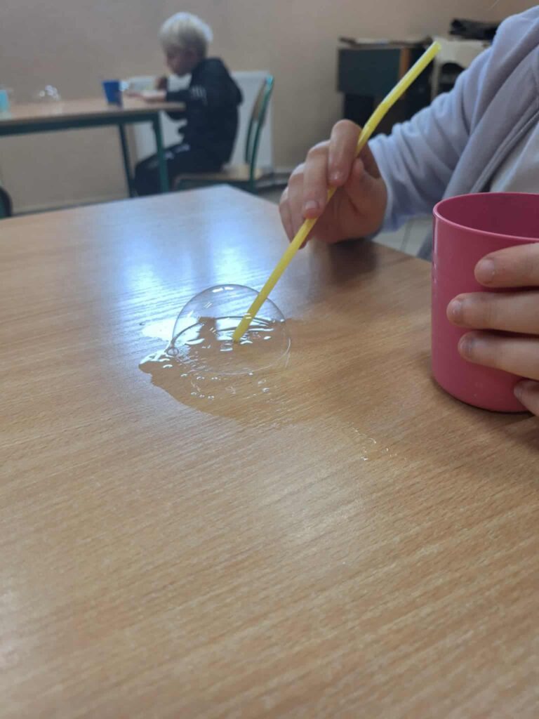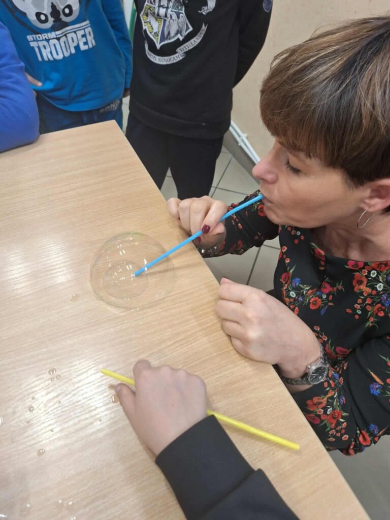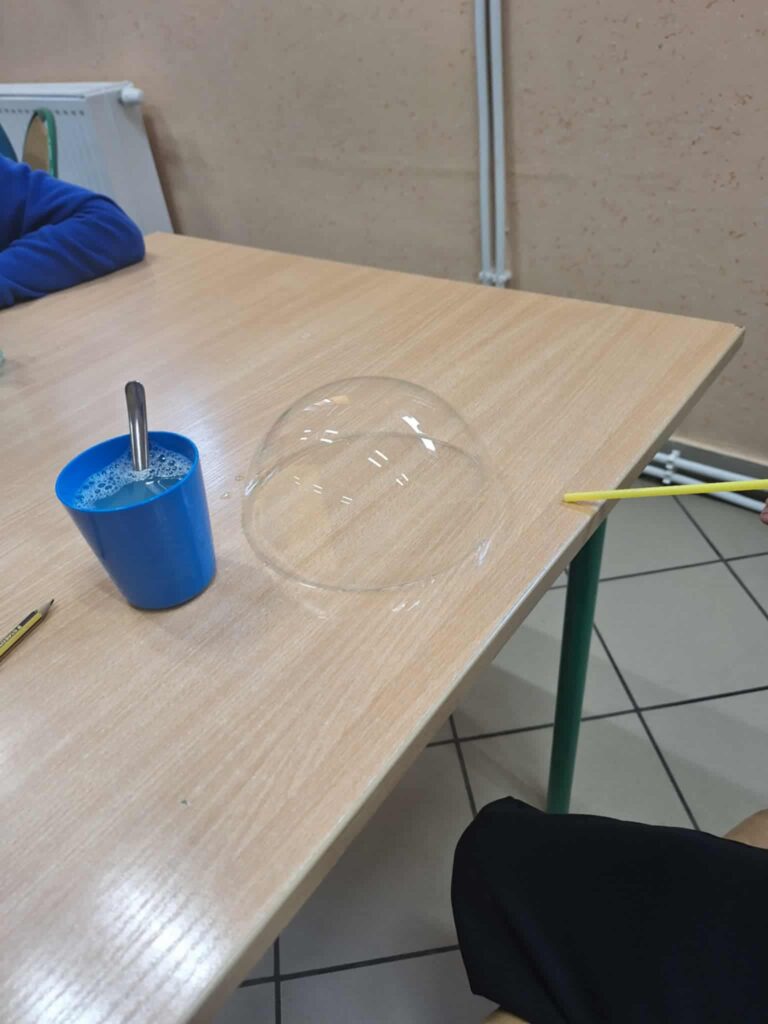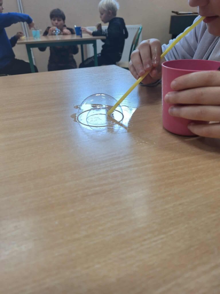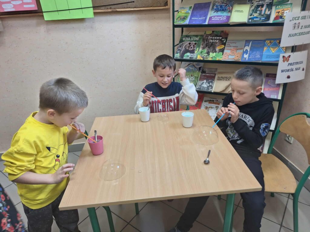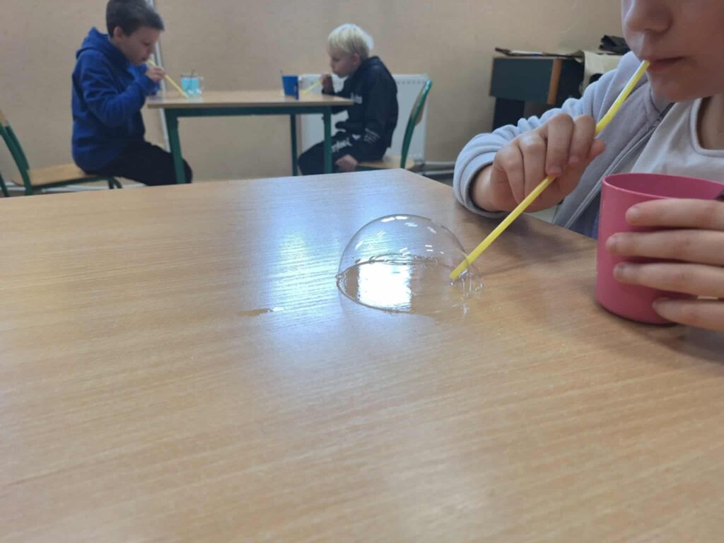 Na wtorkowym spotkaniu Koła Małych Odkrywców każdy uczestnik mógł zamienić się w prawdziwego naukowca! Wspólnie wykonywaliśmy fascynujące doświadczenie „Bańka w bańce”, poznając tajemnice napięcia powierzchniowego i obserwując, jak z pozoru zwykły płyn do zmywania potrafi tworzyć niezwykłe zjawiska. Było mnóstwo śmiechu i ciekawych obserwacji!