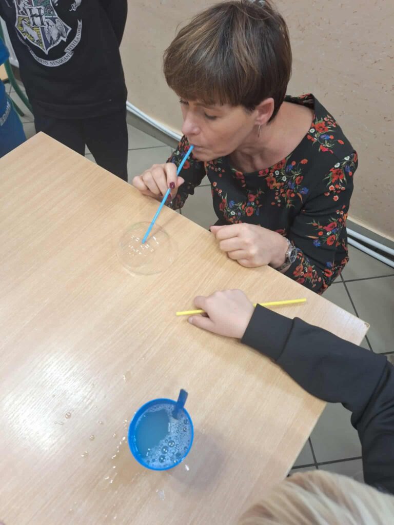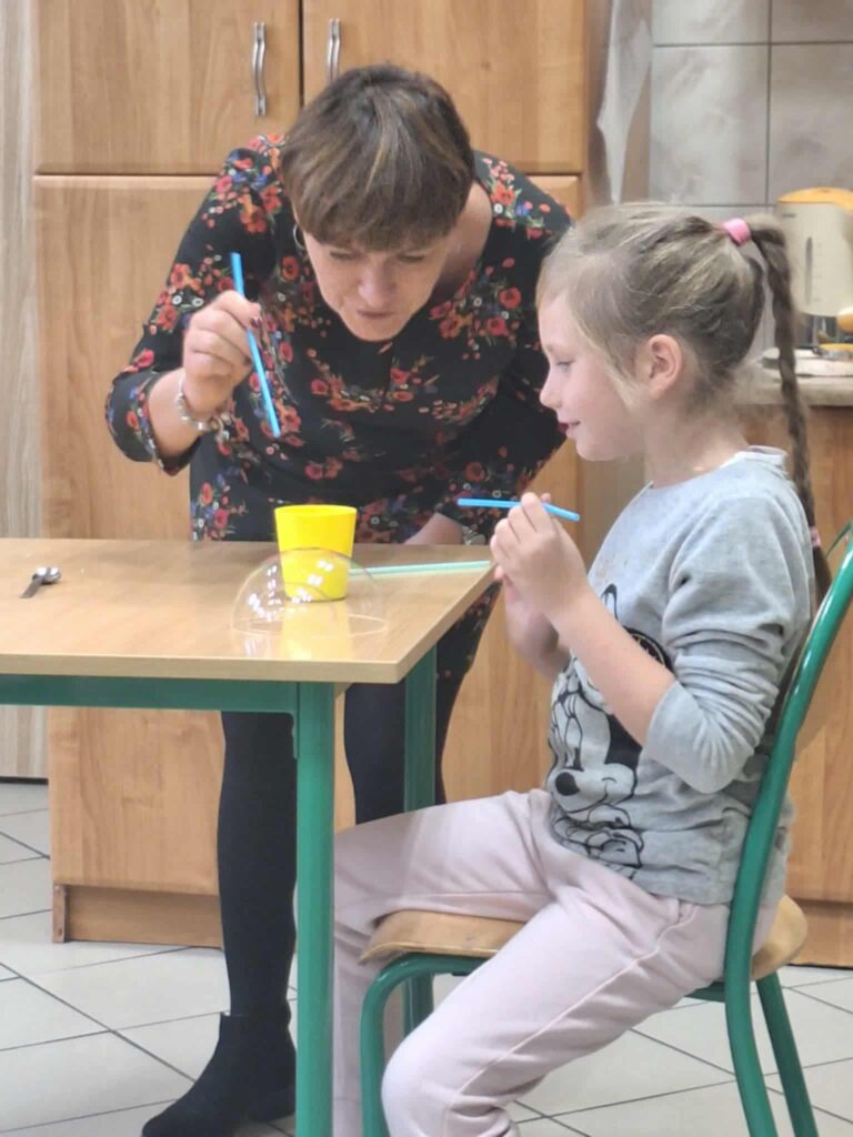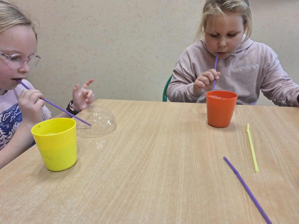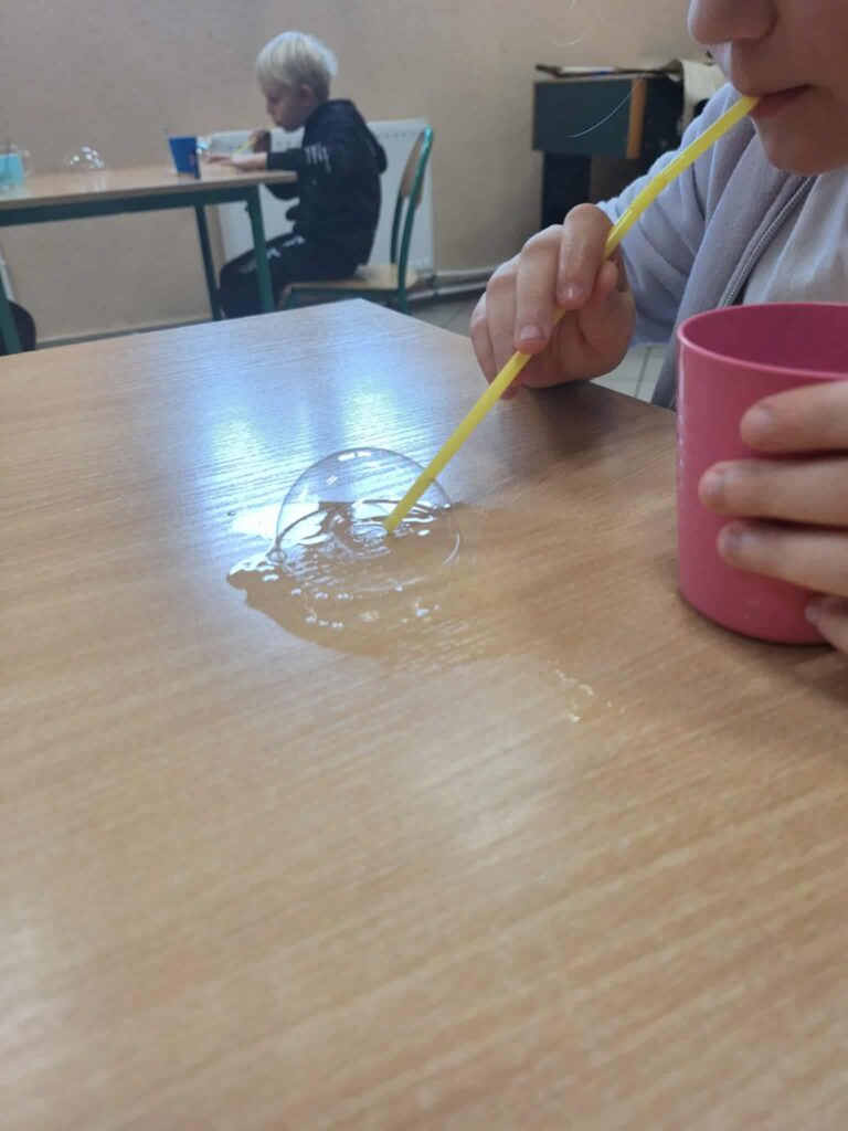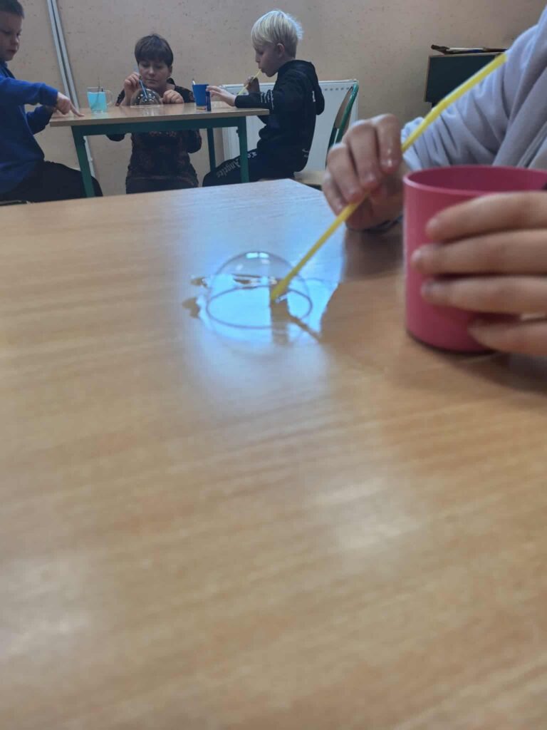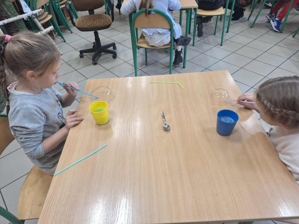 Na wtorkowym spotkaniu Koła Małych Odkrywców każdy uczestnik mógł zamienić się w prawdziwego naukowca! Wspólnie wykonywaliśmy fascynujące doświadczenie „Bańka w bańce”, poznając tajemnice napięcia powierzchniowego i obserwując, jak z pozoru zwykły płyn do zmywania potrafi tworzyć niezwykłe zjawiska. Było mnóstwo śmiechu i ciekawych obserwacji!