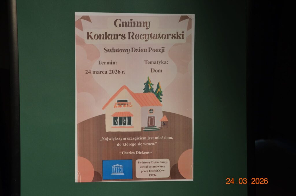 24 marca 2026r. odbył się Gminny Konkurs Recytatorski dla uczniów klas IV-VII szkół podstawowych z terenu gminy Zduny. To już druga edycja tego wydarzenia, które zorganizowała Szkoła Podstawowa w Zdunach w ramach obchodów Światowego Dnia Poezji.